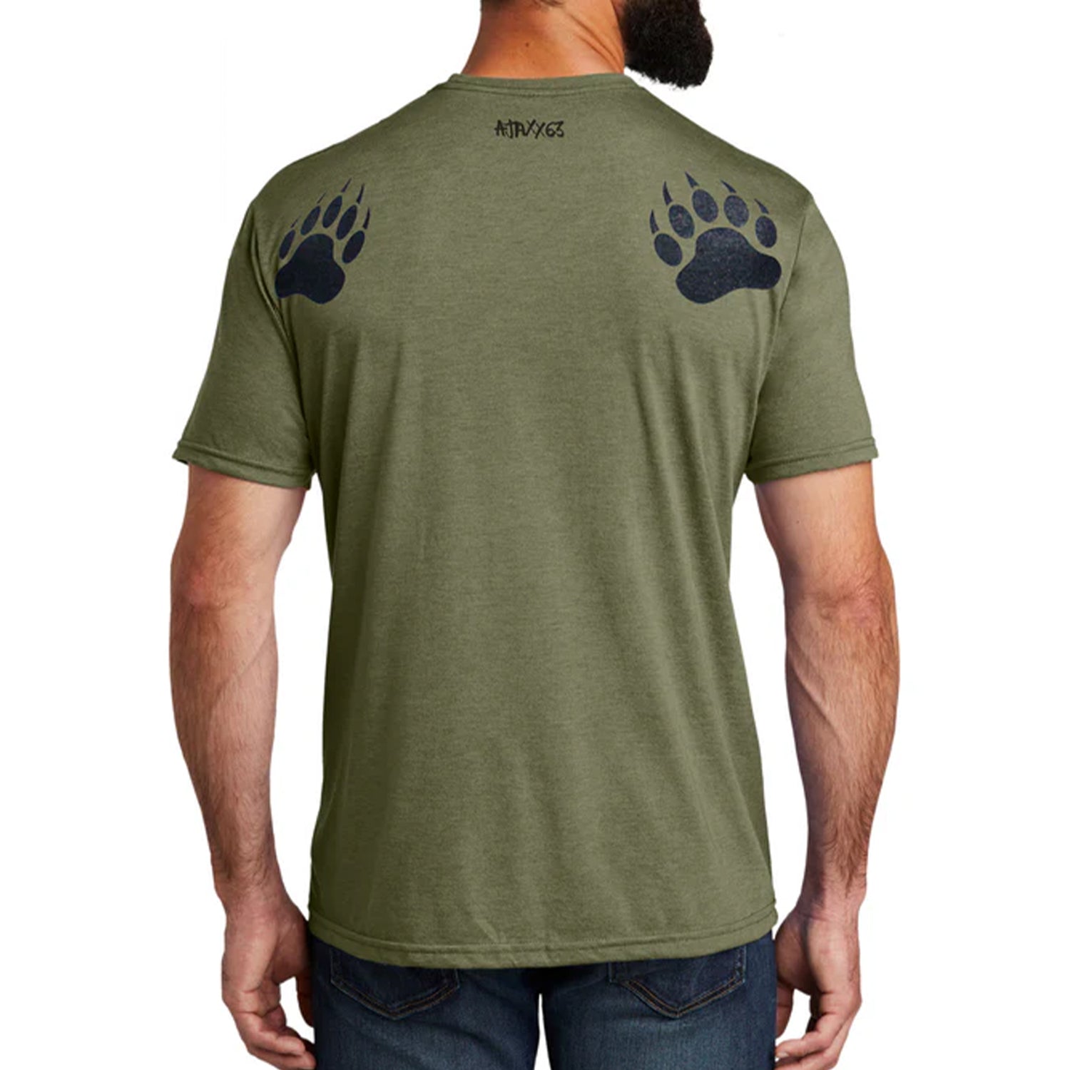 Made from a durable, sustainable cotton tri-blend. The comfortable military green shirt features a bold black screen print design, making it the perfect addition to your wardrobe. Stay stylish and eco-friendly with this must-have tee.