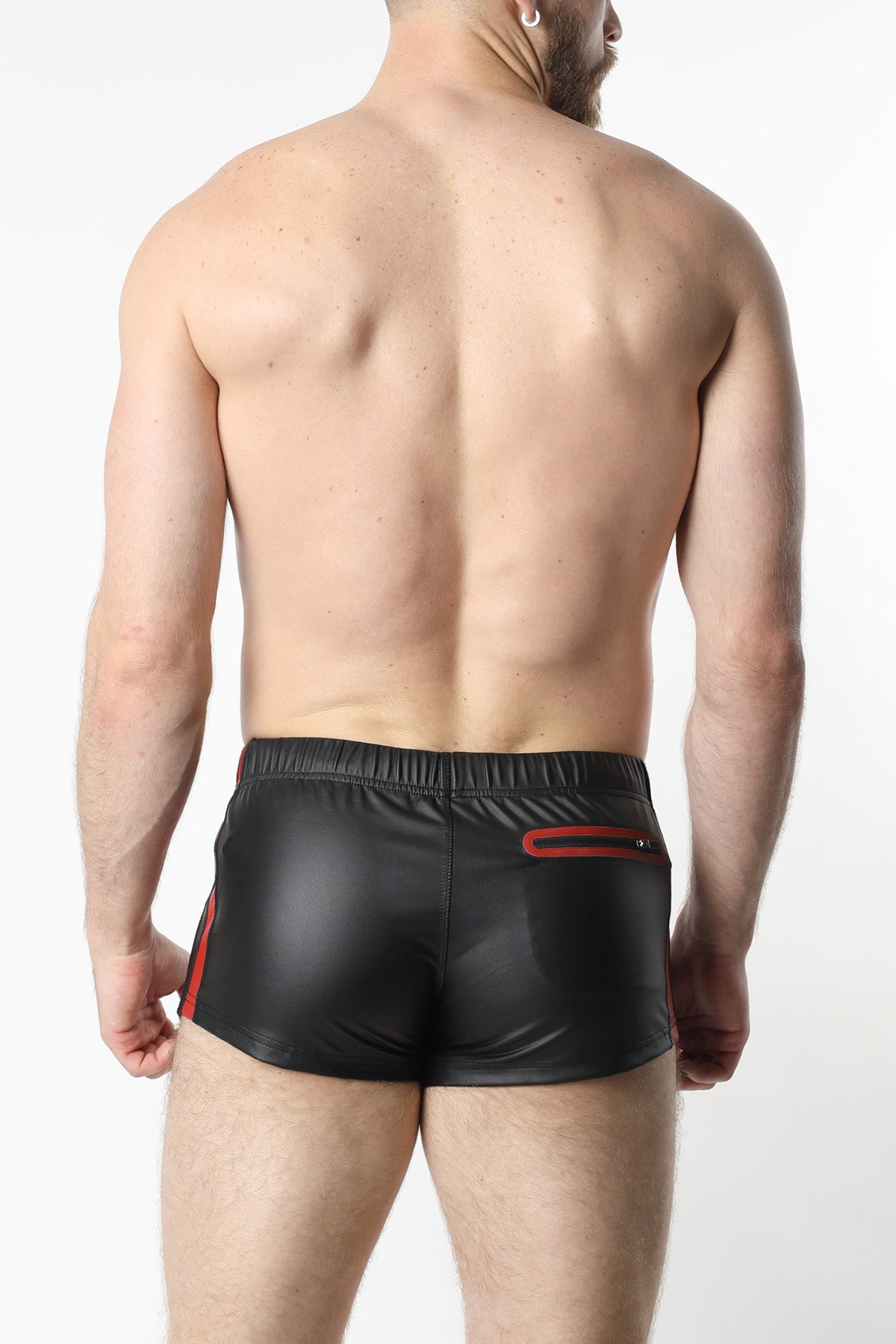 Step up your fetish look at the gym, in the playroom or wherever your adventures take you with the Cellblock 13 Anti Chrome Gear Short Red. These versatile shorts crafted from premium vegan leather deliver unmatched comfort and bold, edgy style.