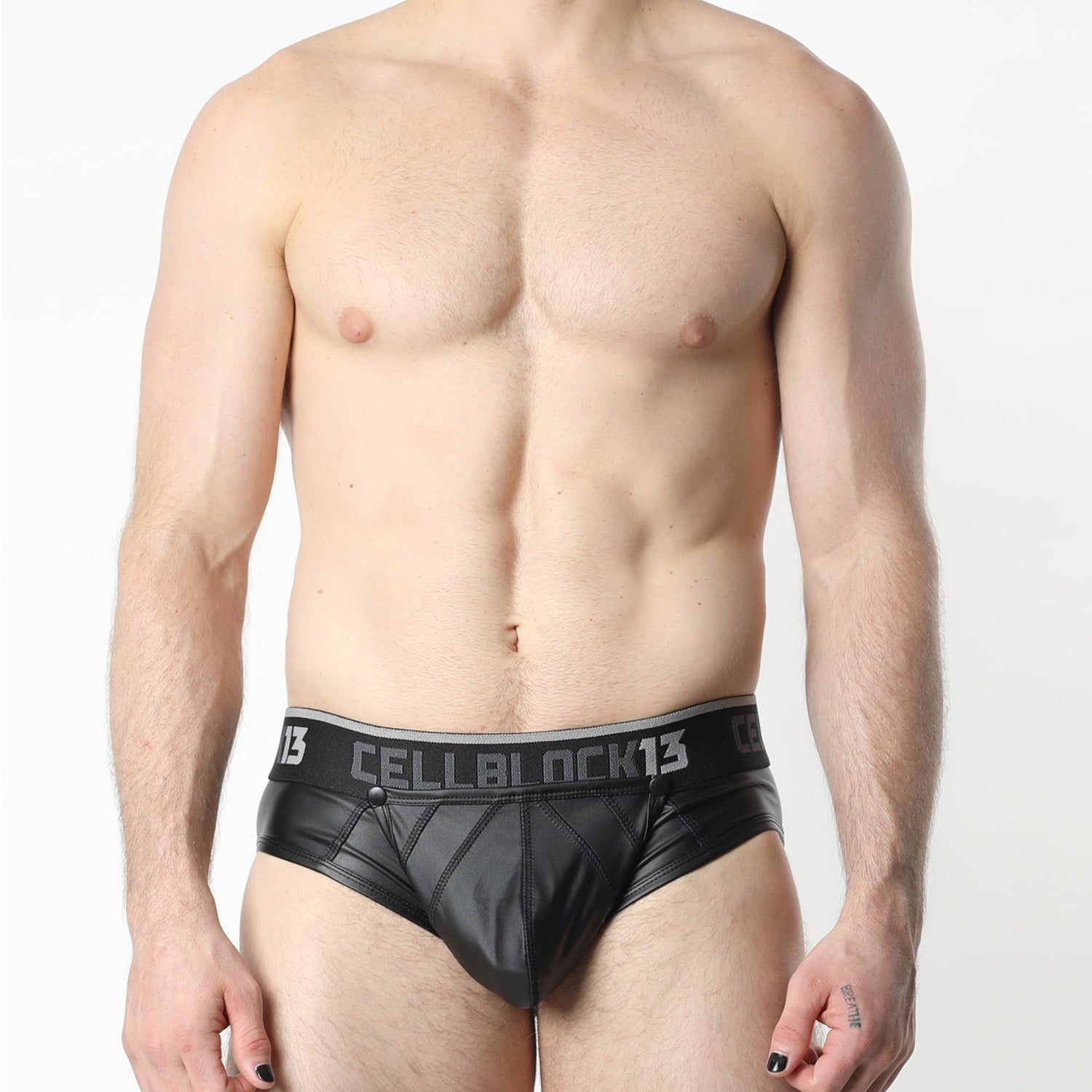Experience the ultimate blend of comfort and style with the Cellblock 13 Anti Chrome Snap Up Jock Brief Black. Crafted from a premium stretchy vegan leather blend for a sleek, edgy look, the seductive matte finish delivers bold and confident appeal.