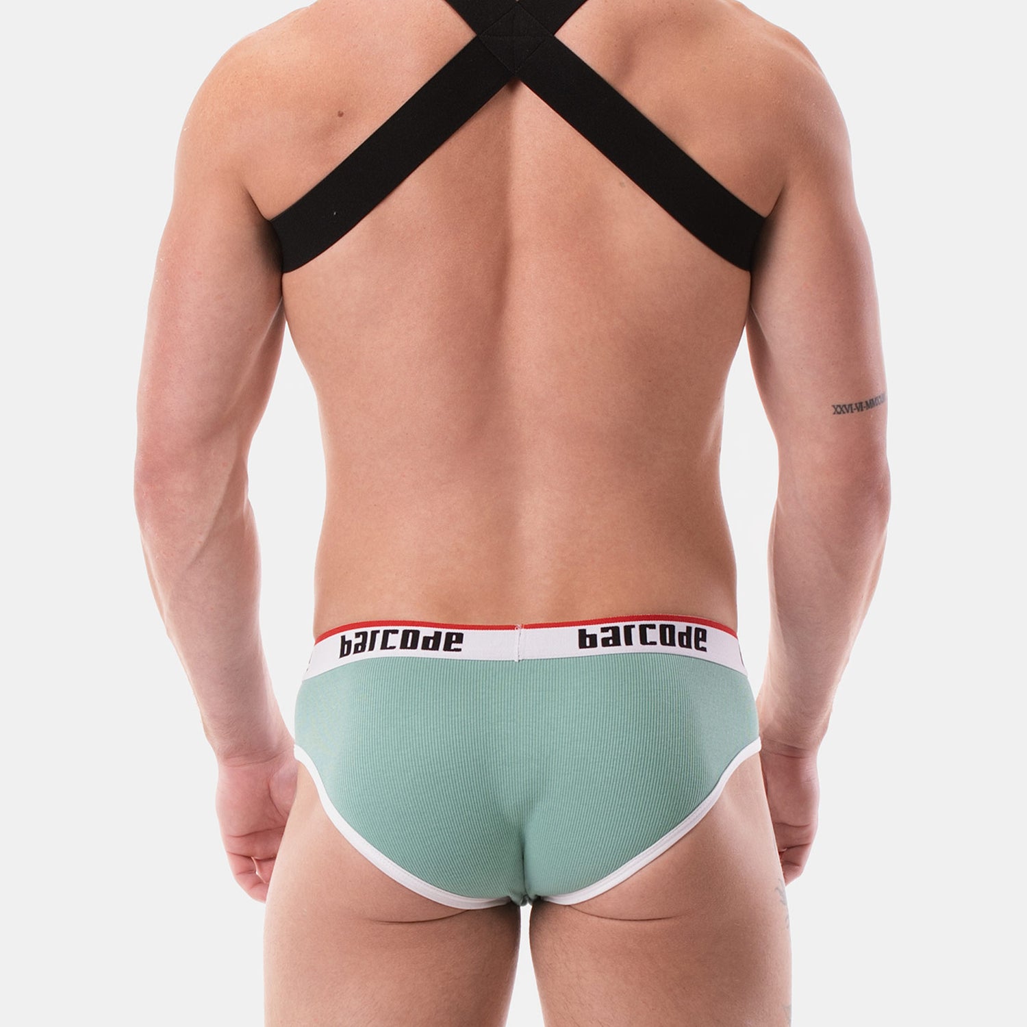 Discover the perfect mix of comfort and cheeky style with the Barcode Berlin Brief Kai Mint White. Designed with a low-rise cut and a convenient fly on the pouch, these briefs provide a flattering fit that stays discreet under your clothes. The fresh mint and white color combination adds a playful pop to your everyday essentials, making you feel confident and sexy from morning till night. Crafted for all-day wear, they balance support and freedom effortlessly. Tighten up your underwear drawer with this subtle yet stylish choice.Â