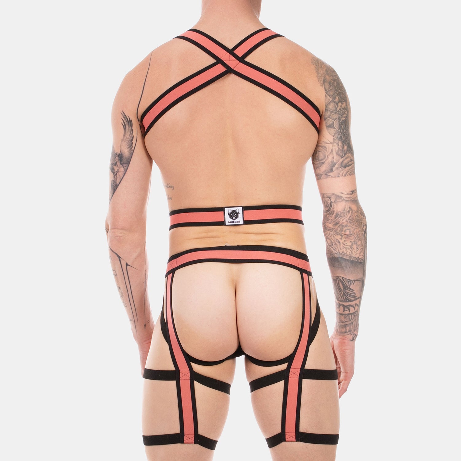 The contrasting apricot and black colors not only create a visually striking effect but also highlight the meticulous attention to detail in its construction. Engineered for a secure fit, it ensures stability without compromising freedom of movement. This harness delivers durability and a confident edge, reflecting Barcode Berlin’s commitment to quality and innovation in harness design. Strap in and experience a perfect blend of flexibility, support, and standout style.