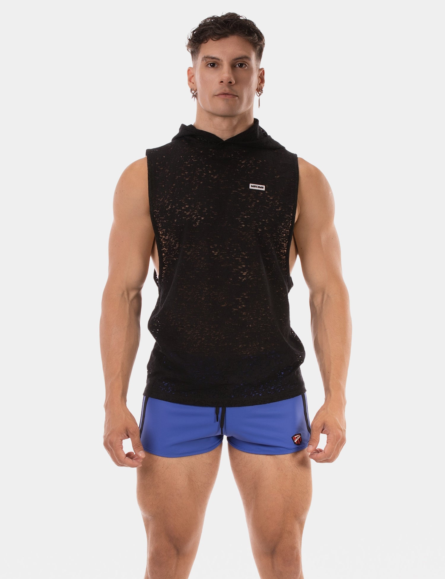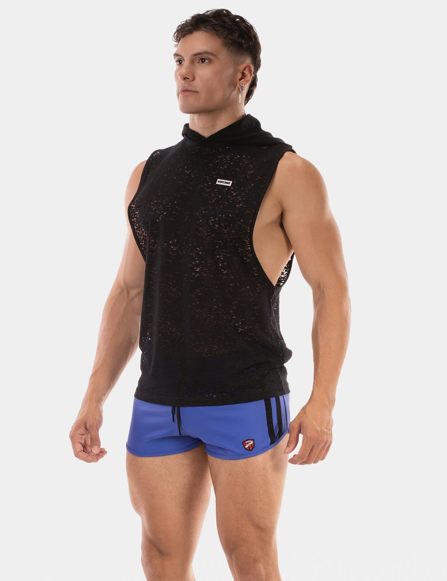 The Barcode Berlin Hoody Samuel Black is a sleeveless hooded tank that effortlessly blends sporty with sultry. Its subtle textured pattern and hood create a captivating look, while large armholes reveal just enough for a bold, athletic vibe. Made from lightweight, breathable fabric, it promises comfort and style whether you’re hitting the gym or turning heads on the street.