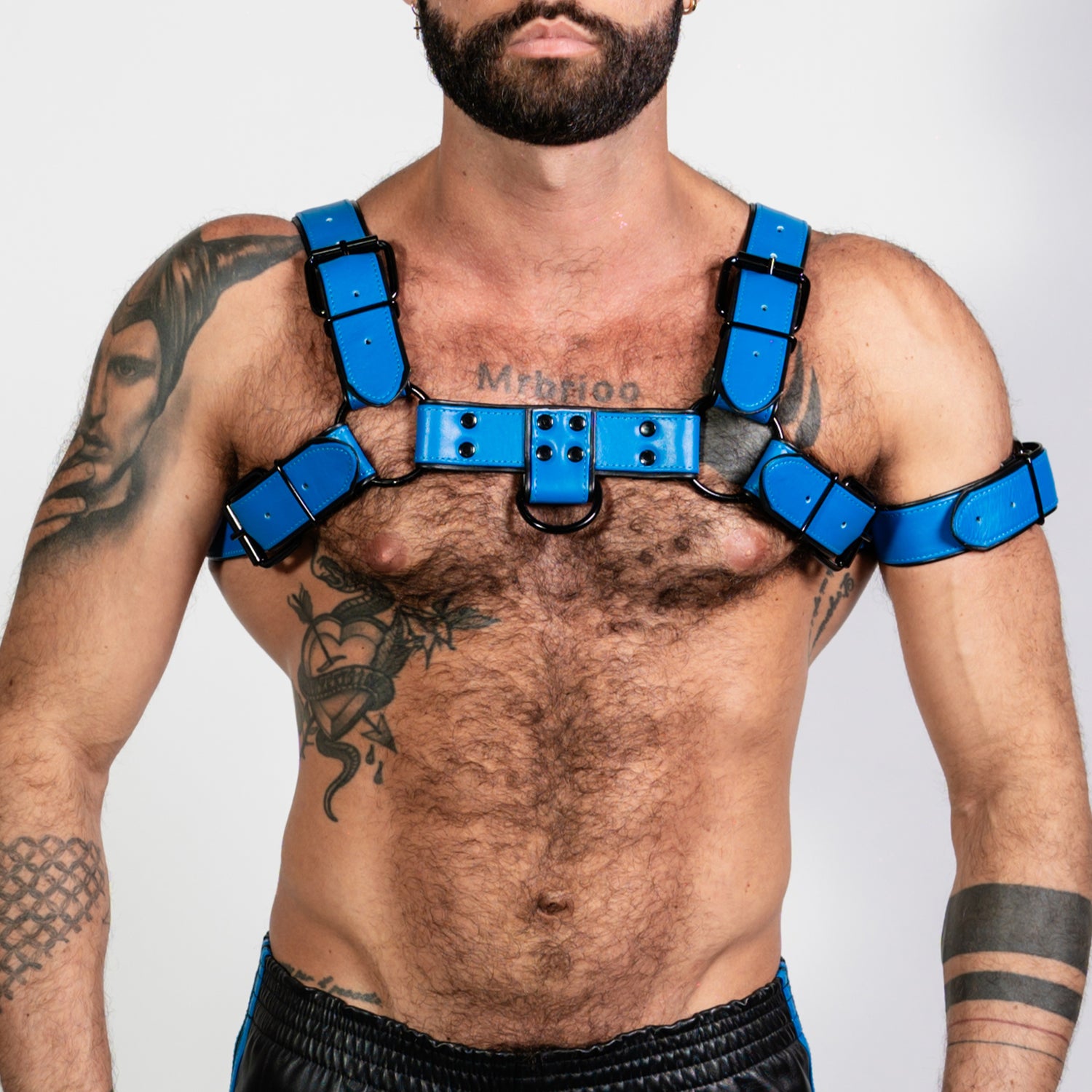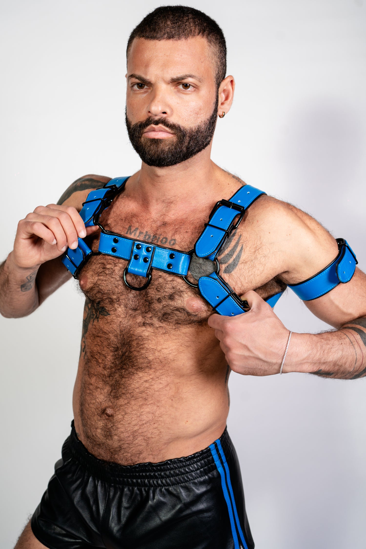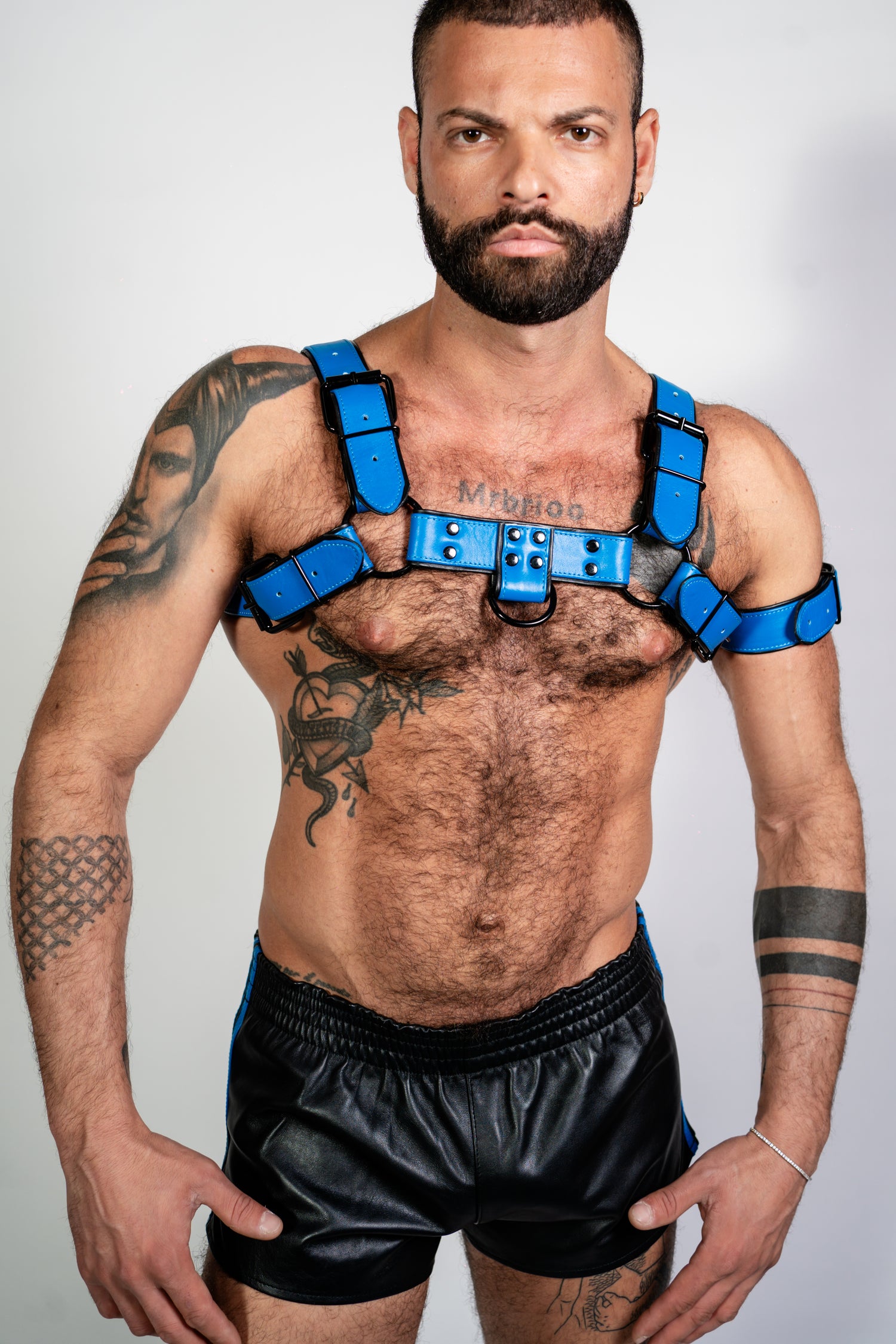Crafted from 100% premium calf leather, the all-new ruff GEAR Bold Leather Bulldog Harness Blue provides a very visible signal to all admirers! Bright, unmissable coloured leather gives the strongest signal yet of what you are into, and what you're after! Add in exceptional softness, comfort, and long-lasting durability, and you've a harness that works for you in more ways than one.