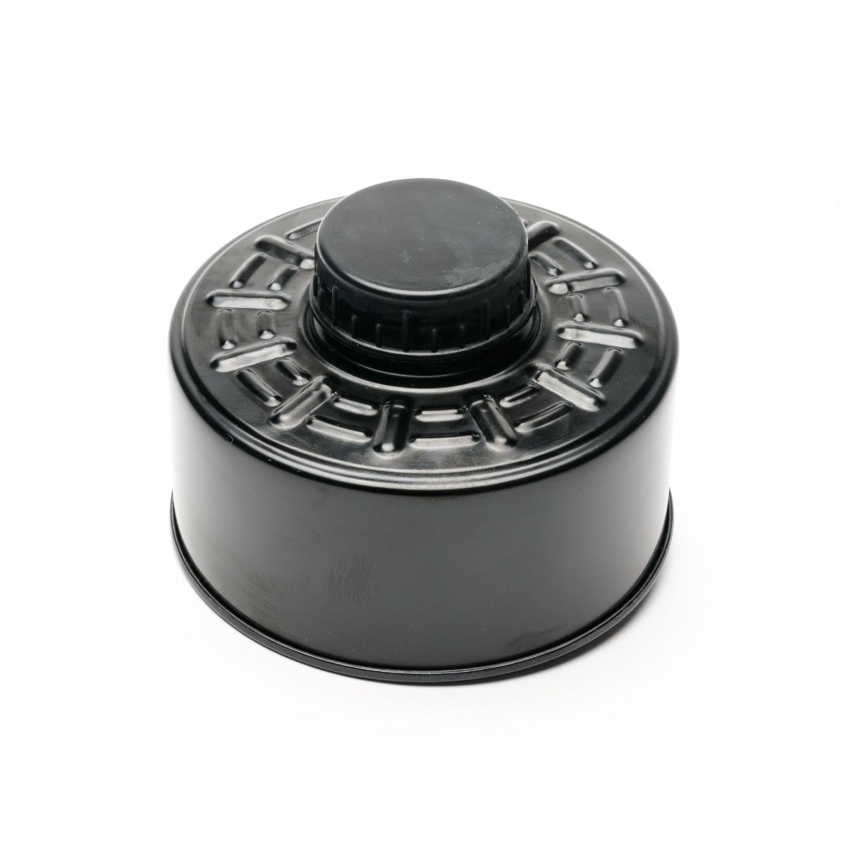Inside the cannister is a regular foam filter. You can breathe easily with this filter by removing the rubber pull-tab on the bottom. When finished you can put the rubber tab back on the bottom and screw the cap back on the top and store for your next session. This Gas Mask filter has been altered.
