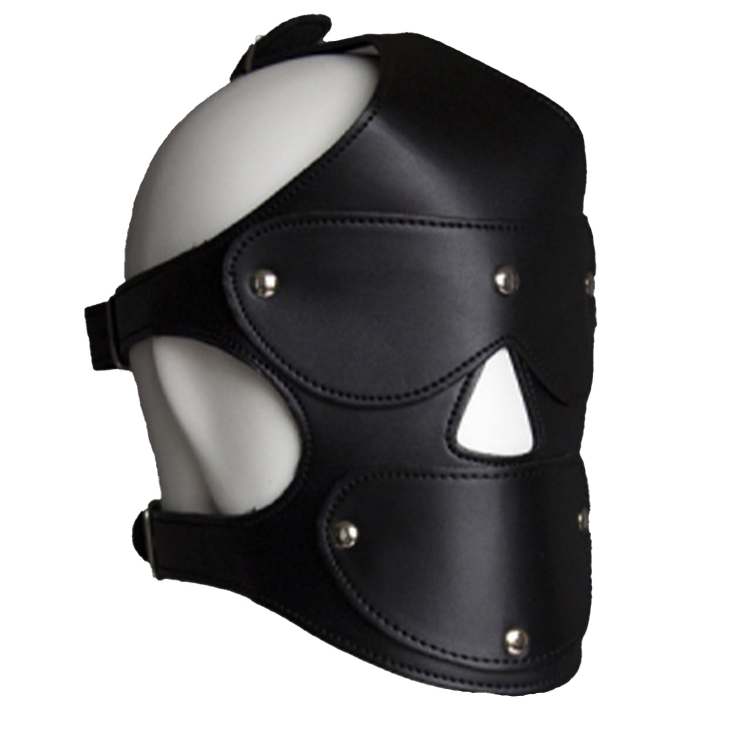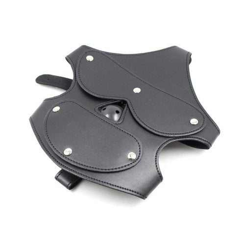 Includes detachable eye covers, mouth cover and ball gag, attached with metal pop buttons.