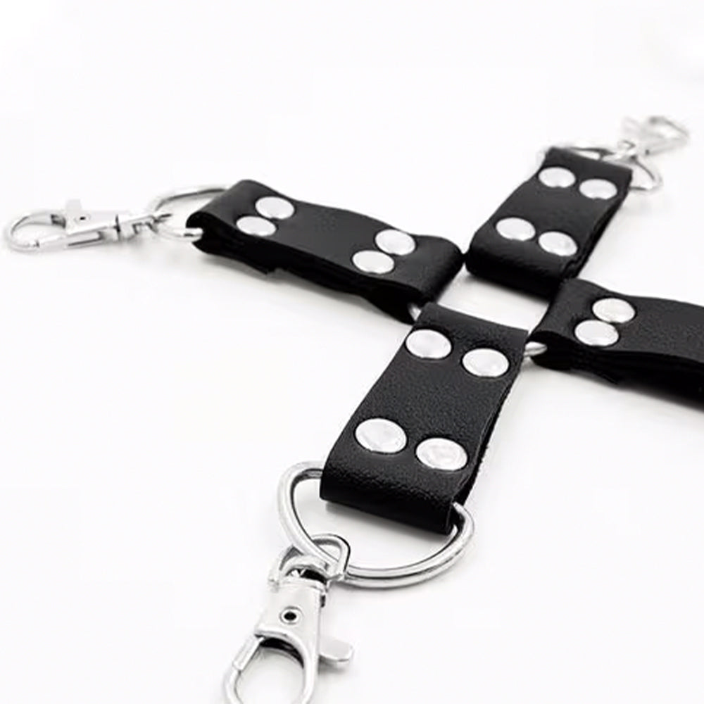 Unleash your desires with the BASIXXX Hog Tie. Made from high-quality faux leather and accented with polished chrome, this set lets you restrain your partner securely, putting you in full command. Embrace the thrill of control and submission as you explore your fantasies together. Prepare for intense moments of passion and playful resistance.