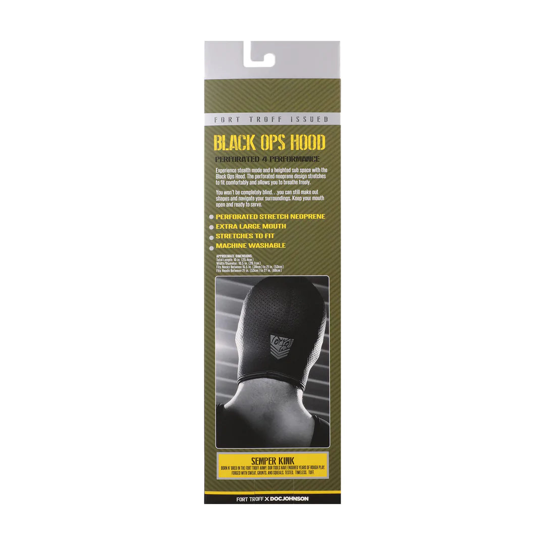 Step into stealth mode with Fort Troff Black Ops Hood Large. Made from stretchy, perforated neoprene, this hood provides comfort and breathability. The open mouth design allows for full service capability while still allowing you to only vaguely see the sizes and shapes coming towards you. You're gonna need to rely on your tongue for the rest of it!Â