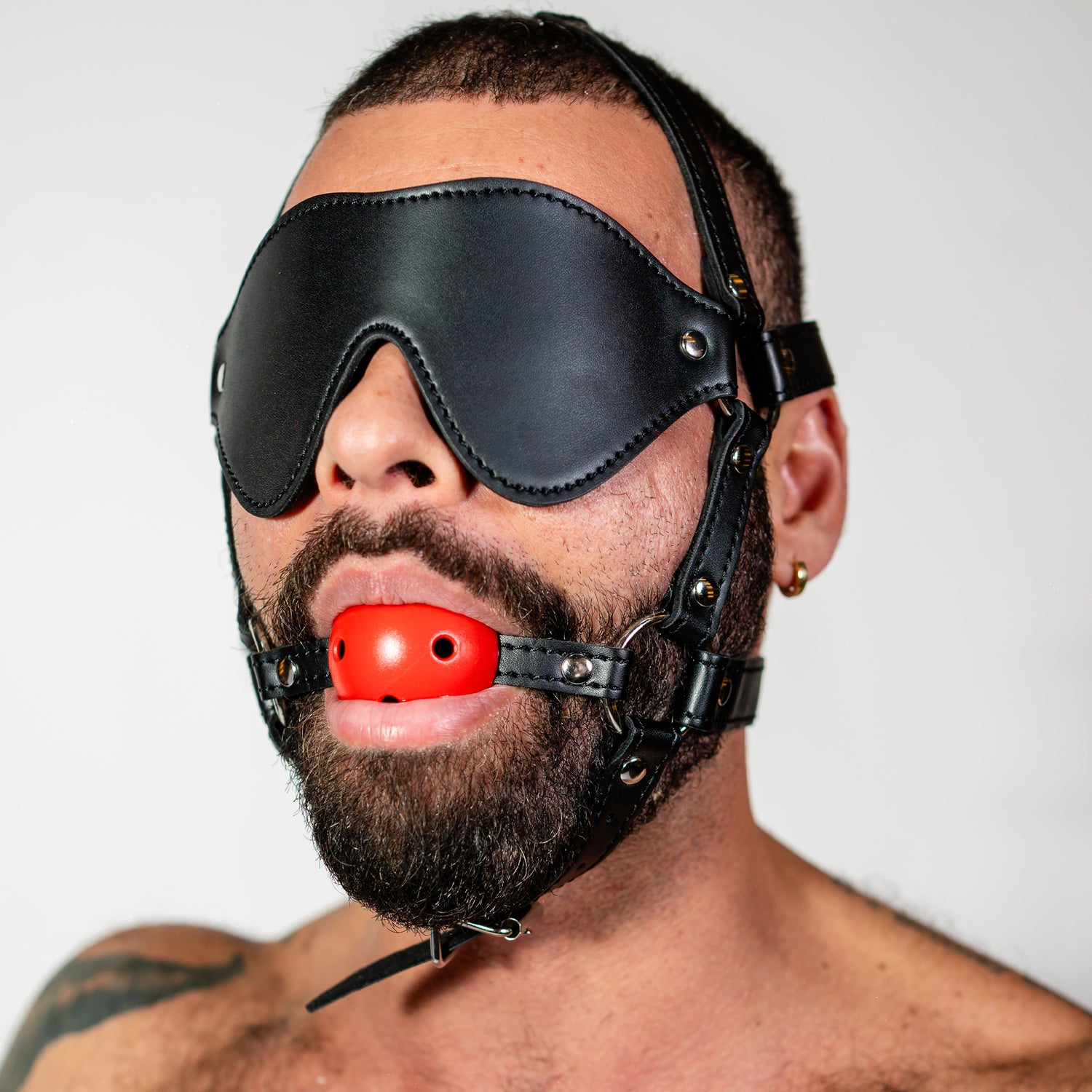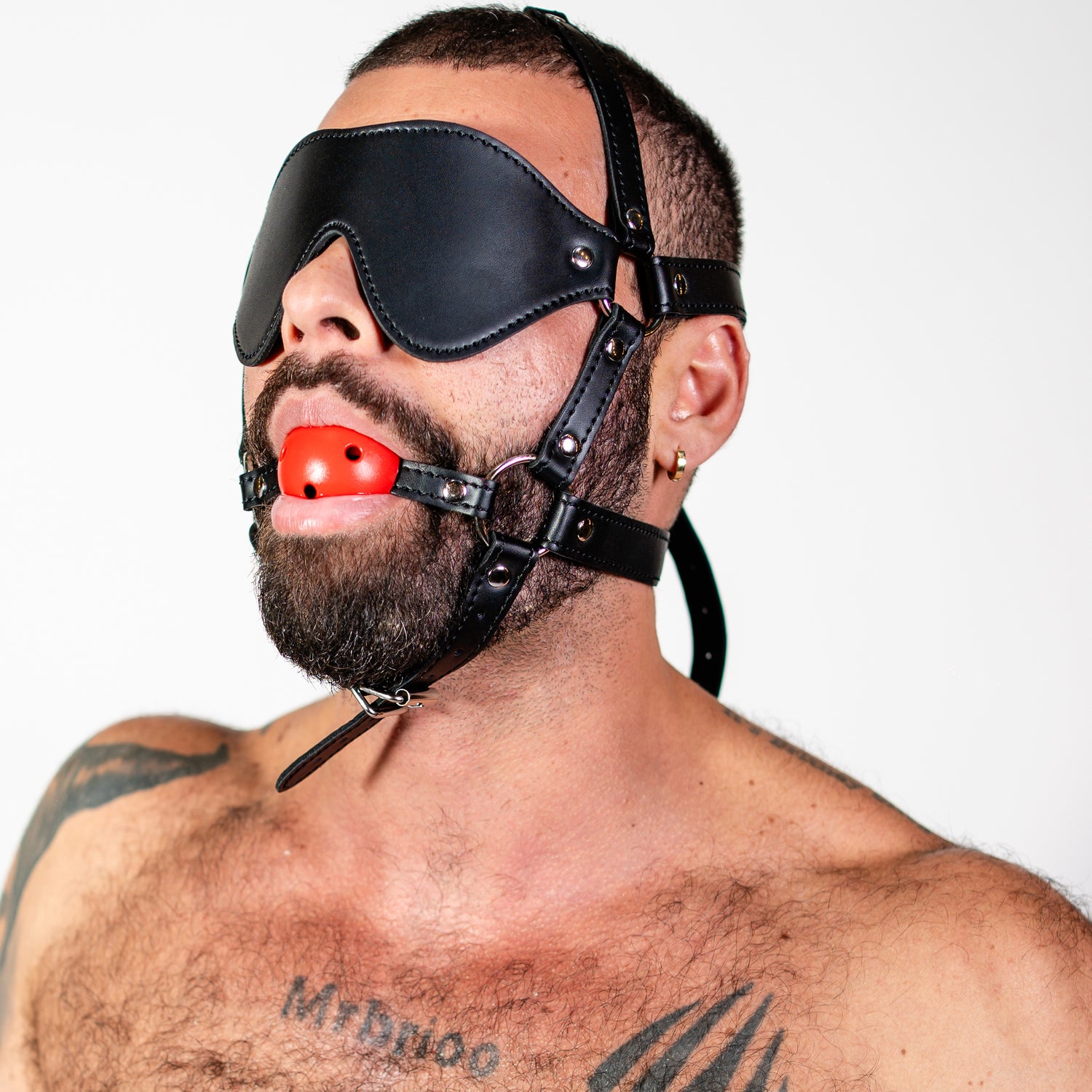 Dive into your wildest desires with the ruff GEAR Rein Harness featuring a Breathable Ball Gag! This all-in-one fetish headset offers intense sensory play with an eye mask, built-in breathable gag, and secure buckled straps.