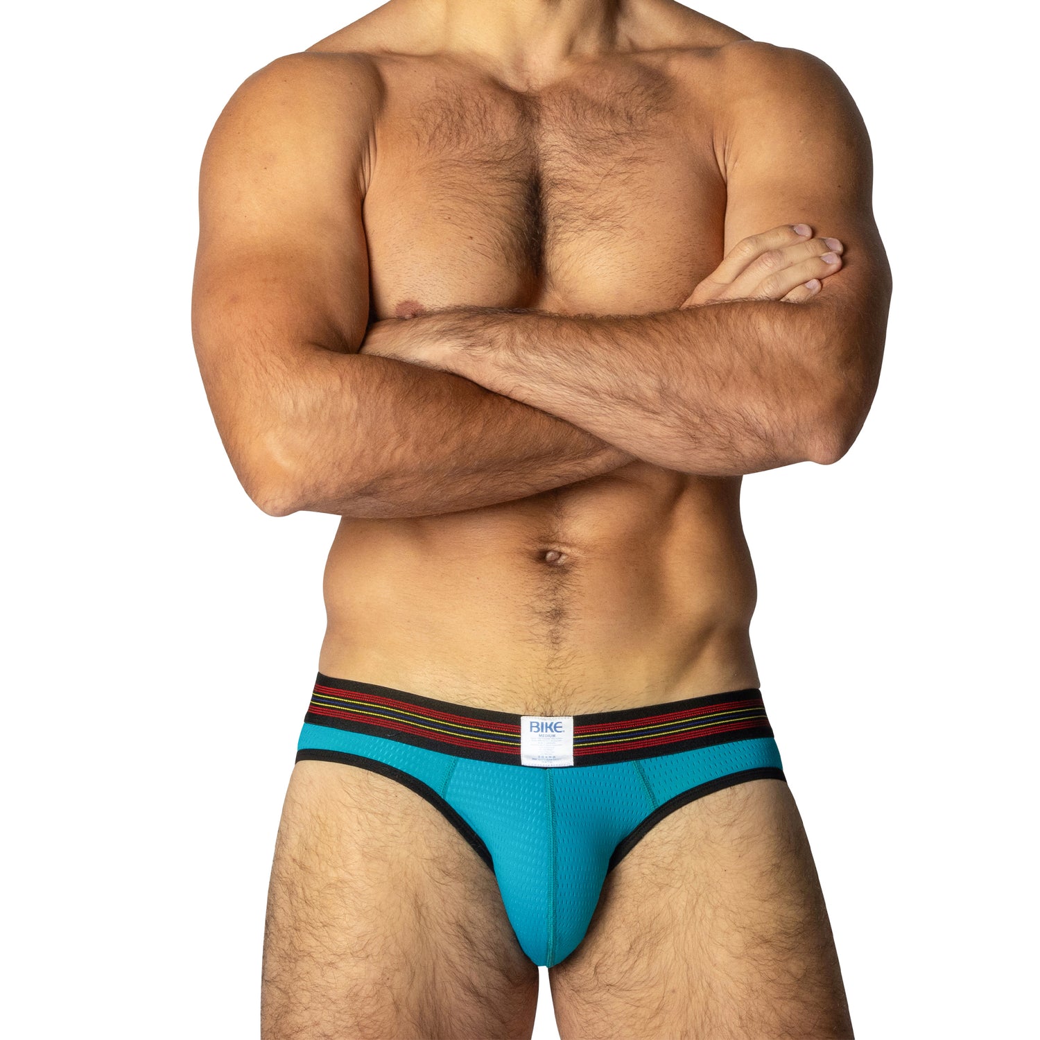 Upgrade your underwear game with our BIKE Mesh Brief in Teal. Our classic cut briefs feature silky soft and breathable material, providing all-round support for your package. Embrace comfort and style with the famed material of the jock, now in your briefs.