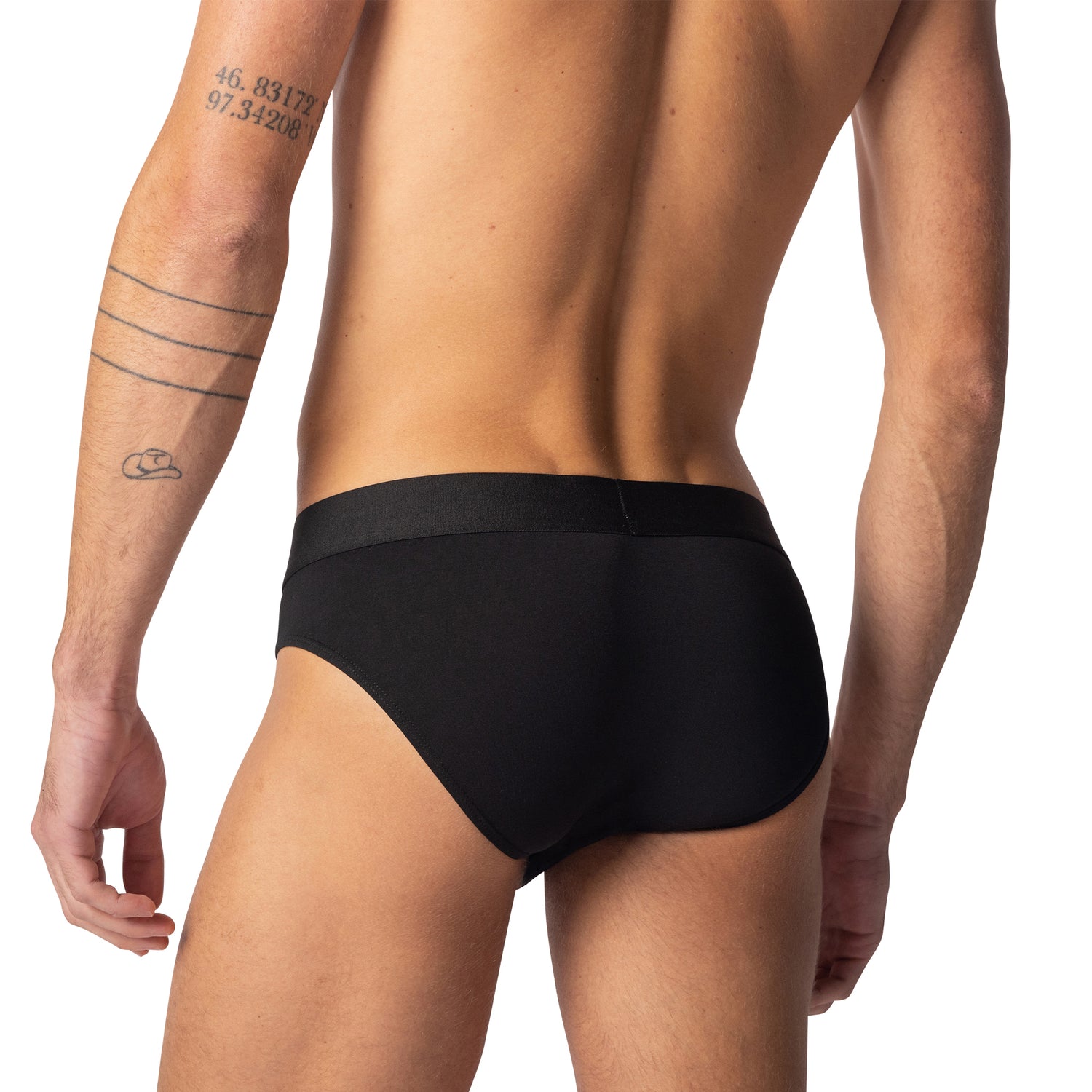Ride in style with BIKE Active Brief Black! Made with eco-friendly material, these briefs offer comfort and style with an elegant black and gold waistband. Stay cool and confident, no matter where your adventures take you. Look good, feel good, and do good for the planet!