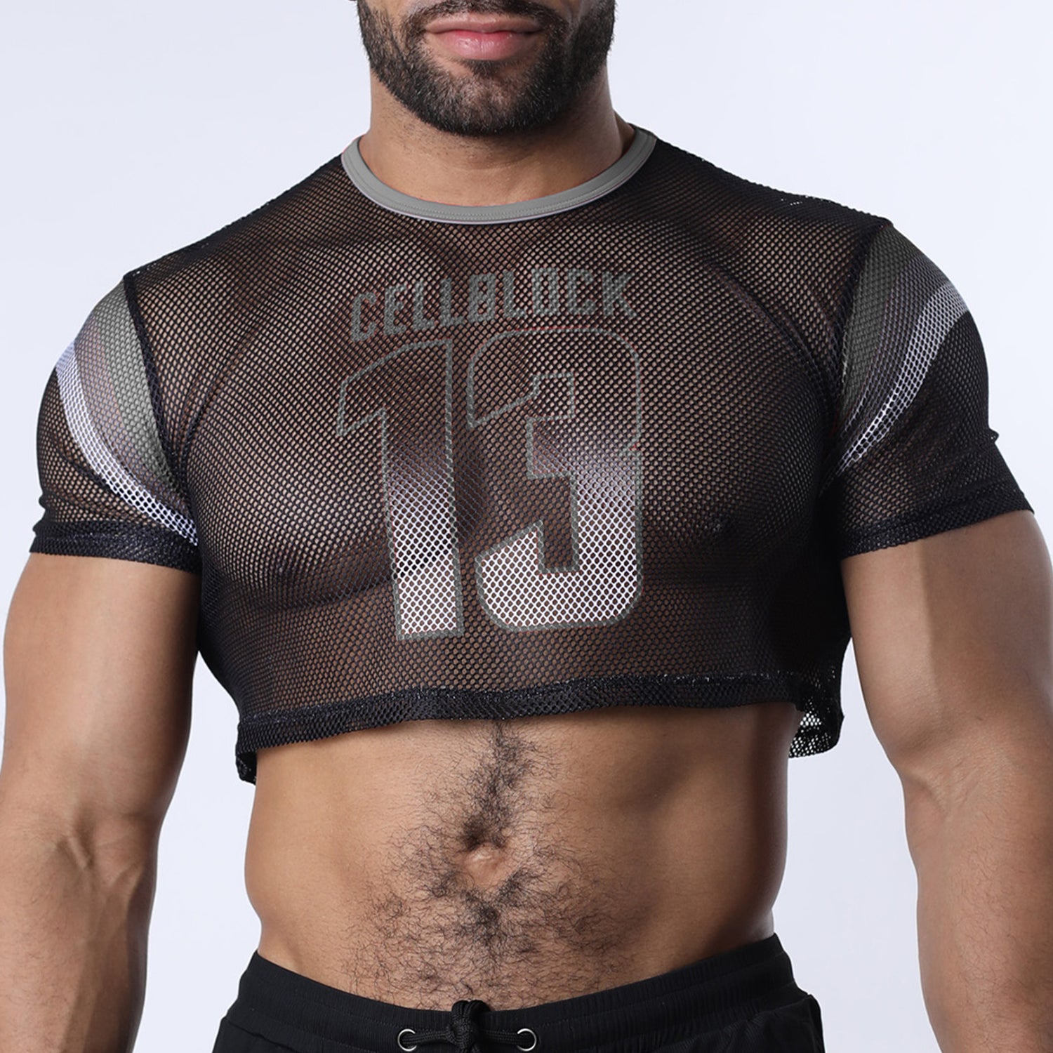 Feel those vintage athletic vibes with this ultra-stylish Cellblock 13 Chain Reaction Mesh Crop Top Grey. Built from lightweight, breathable polyester, its sheer fabric highlights your chest and arms, while the striking "13" jersey graphic adds retro jock energy. The cropped fit and crew neckline with double-stitched trim enhance its sexy, sporty appeal. Perfect paired with matching Chain Reaction pieces or styled over denim for a confident, game-day look that turns heads with every stride. For whatever shape you've got - show it off in style and confidence and show them you're sexy no matter what!