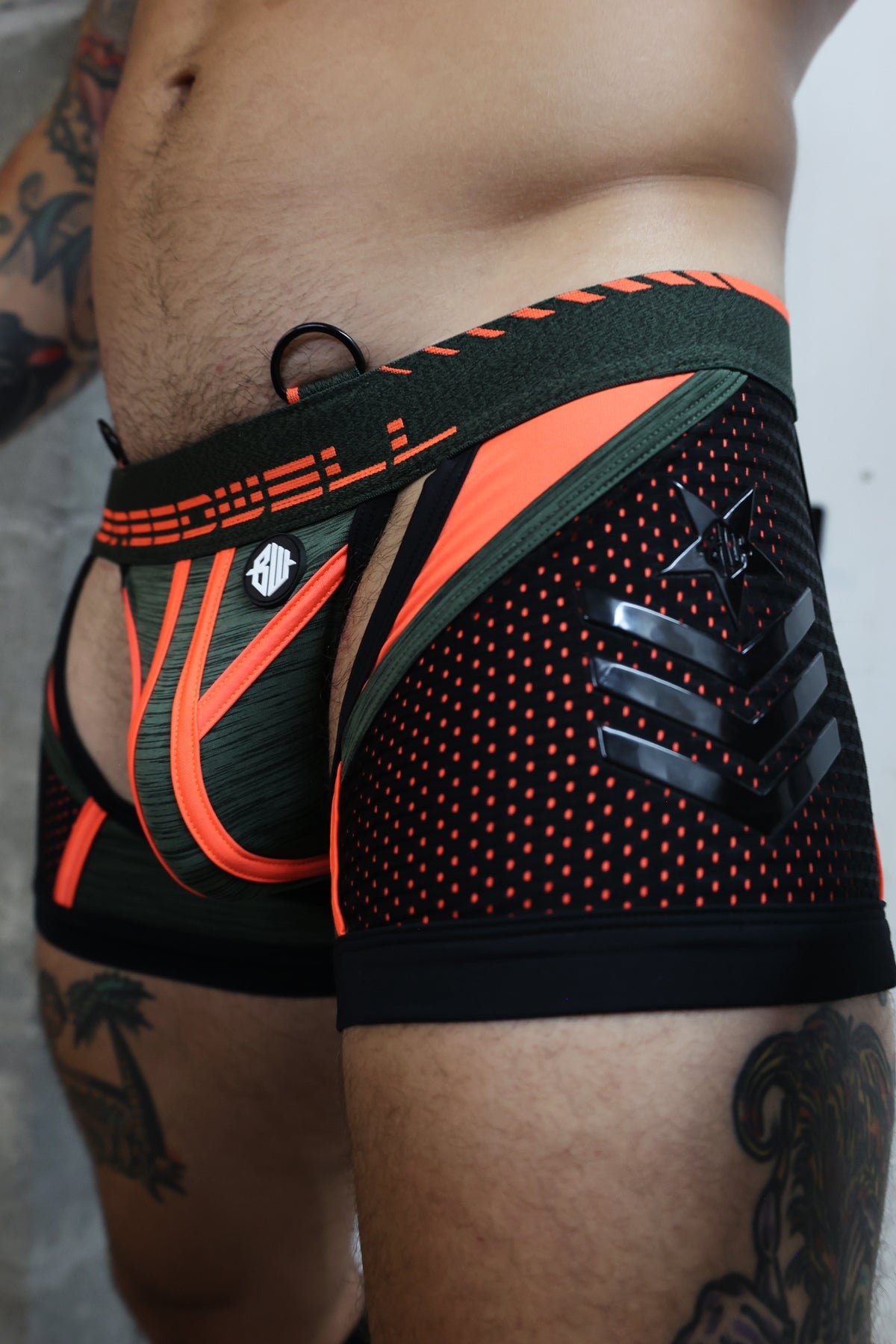 Take your booty to booty camp with the Breedwell Cockpit Chap Jock Army! By far one of Breedwell’s most popular designs, this fusion of chap shorts with the classic jockstrap will command all the attention in the bedroom or the club.