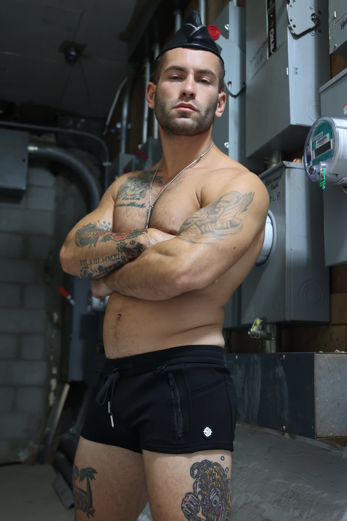 The Breedwell Cockpit Shorts Black are all you need in your search for the hottest sea men! This navy-inspired fetish wear neatly wraps your porthole and your periscope in a sexy, snug fleece.