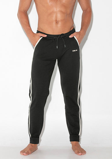 Step out in the Code 22 Focus Jogger Black . The slim joggers made with stretch technology will have you standing out with the contrasting off-white piping running down each leg. The waistband and ankle cuffs are finished in a ribbed material, with the iconic Code 22 label on the left thigh. Combining casual and sexy to make you feel your best wherever you are.