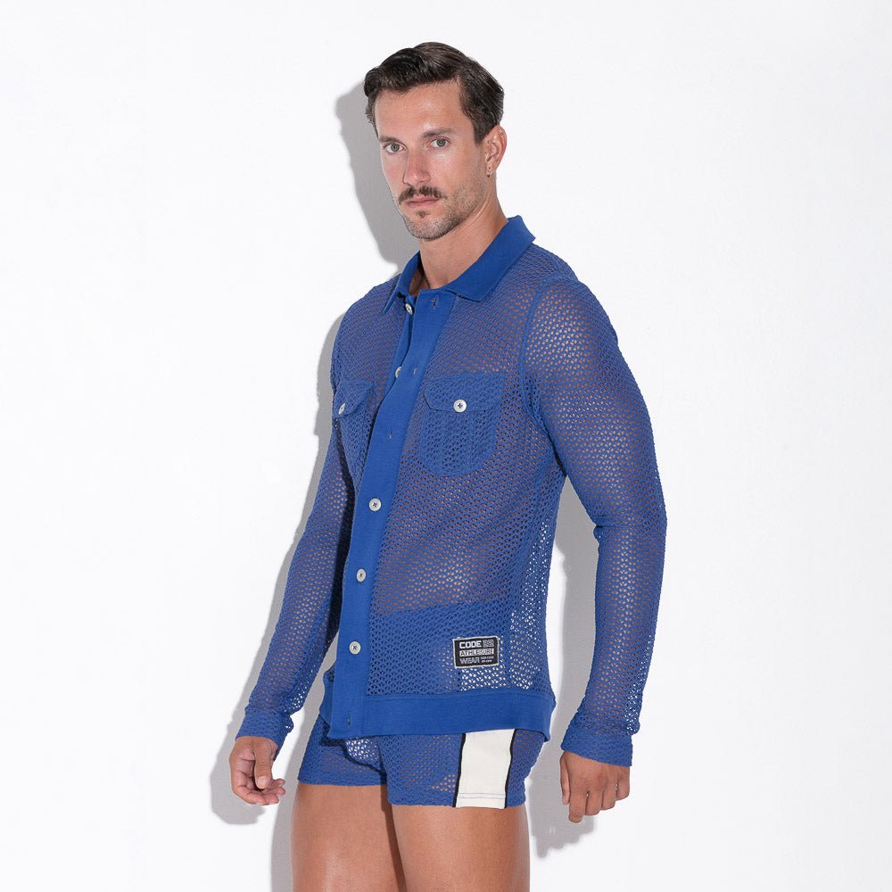Get a sexy and sophisticated fetish look in the Code 22 Openwork Jacket Blue! This classic cut gets an elegantly kinky reboot with semi-transparent fabric in a flattering fit.
