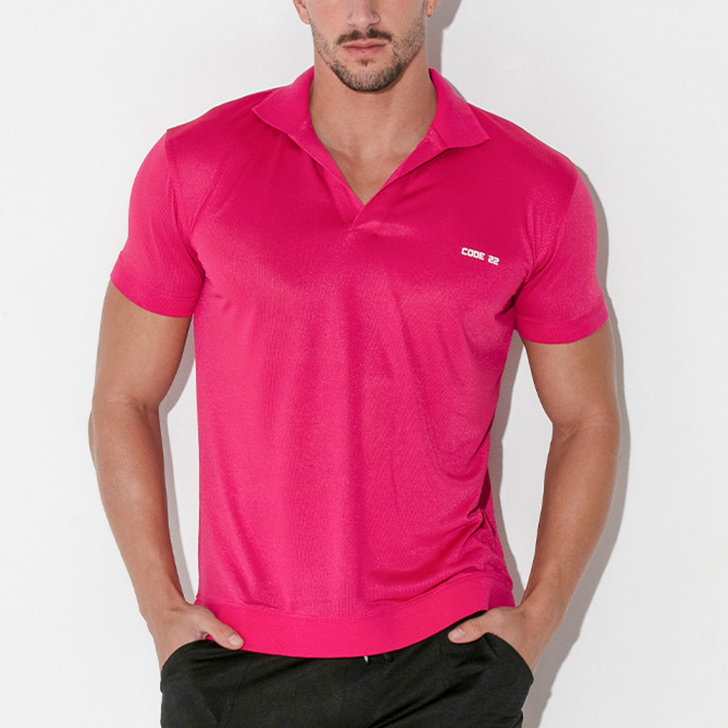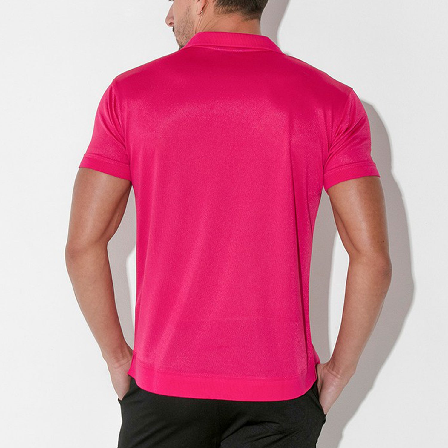 Stand out boldly in this slim fit polo keeps you cool and confident. The sharp ribbed collar and sleeve finishes frame the vibrant pink with a sleek edge; perfect for those who dare to combine performance with striking style.