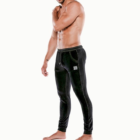 Get your sexy on in a pair of Code 22 Plush Velvet Jogger Black. These stretch velvet slim fit joggers with contrast stitching have two front pockets and one rear pocket with embroided iconic logo detail. Leave nothing to the imagination!