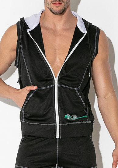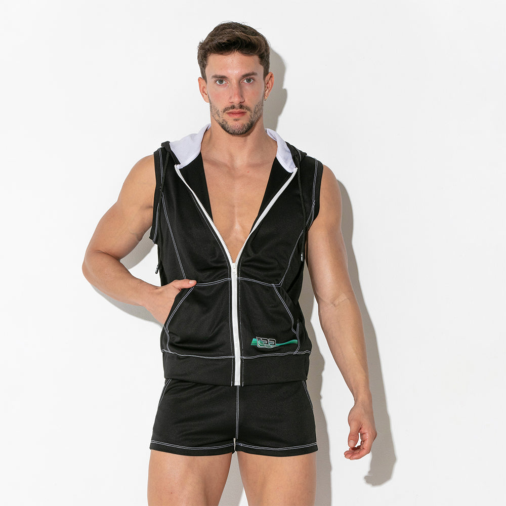 The Code 22 Motion Hoody Black; great for working up a sweat. Made from shiny quick dry fabric, this slim fit, zip through hoody features kangaroo pockets detailed with the retro Code 22 logo. The conrasting white top stiching and zip stand out against the black to really help you catch eyes. Being able to wear this to the gym or to a party makes this versatile top, a must have.
