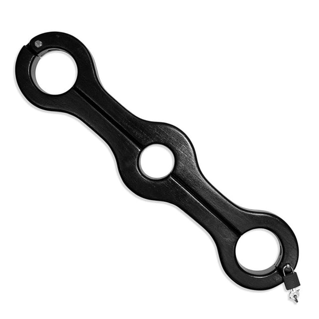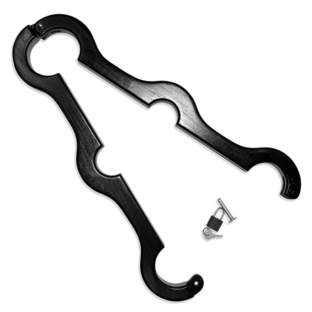 Take command with the daring ruff GEAR 2 in 1 Pillory. This exquisitely handcrafted polished wood restraint measures 52cm in length with a substantial 3cm thickness. Features a restrictive 5cm diameter cock lock paired with a 6.6cm diameter wrist restraint for versatile play scenarios. Complete with padlock and two keys for secure, confident control. Designed for those who aren't afraid to explore the thrilling edge of power exchange and submission.