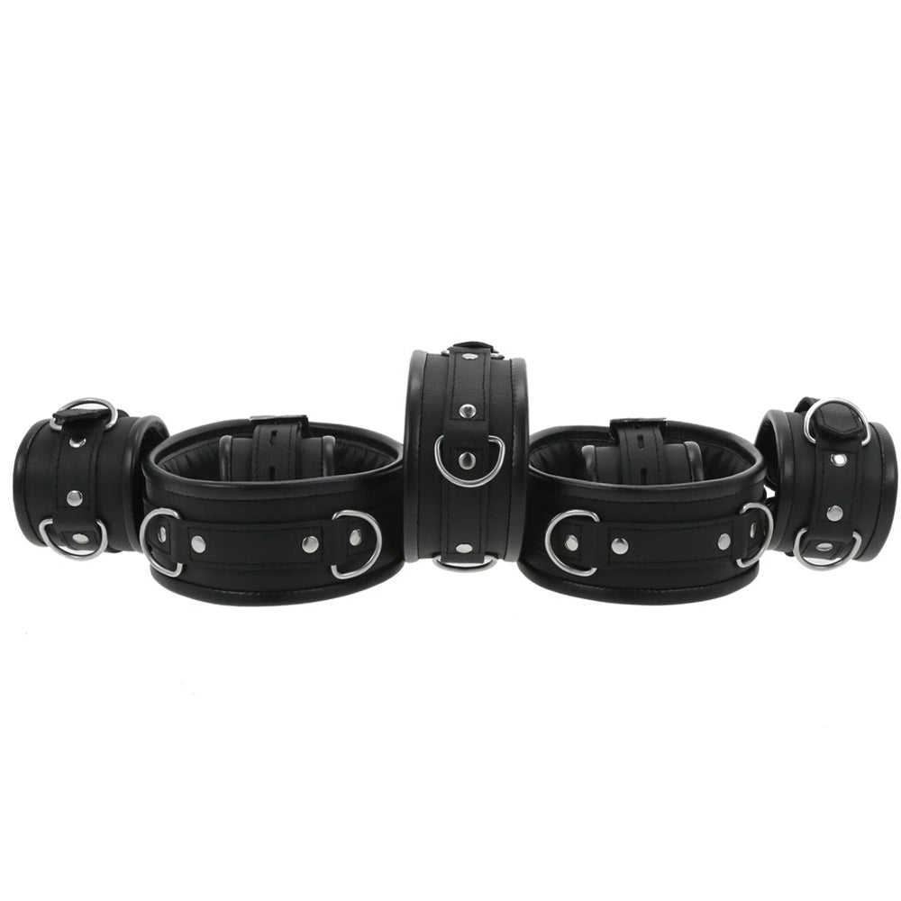 Surrender with the ruff GEAR Leather 7 Piece Bondage Set. Designed for intense play, this luxurious set features a premium collar, padded wrist and ankle cuffs for comfort, plus extra leather straps that combine strength with seductive style. Each piece is fully adjustable with sturdy buckles, ensuring the perfect fit. Experience bondage elevated to its most thrilling form.