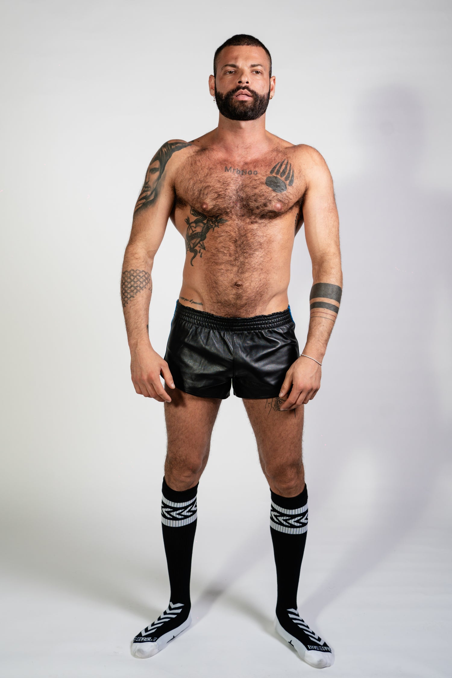 ruff GEAR Double Tone Leather Sports Shorts Black Blue - SMALL is backordered and will ship as soon as it is back in stock.