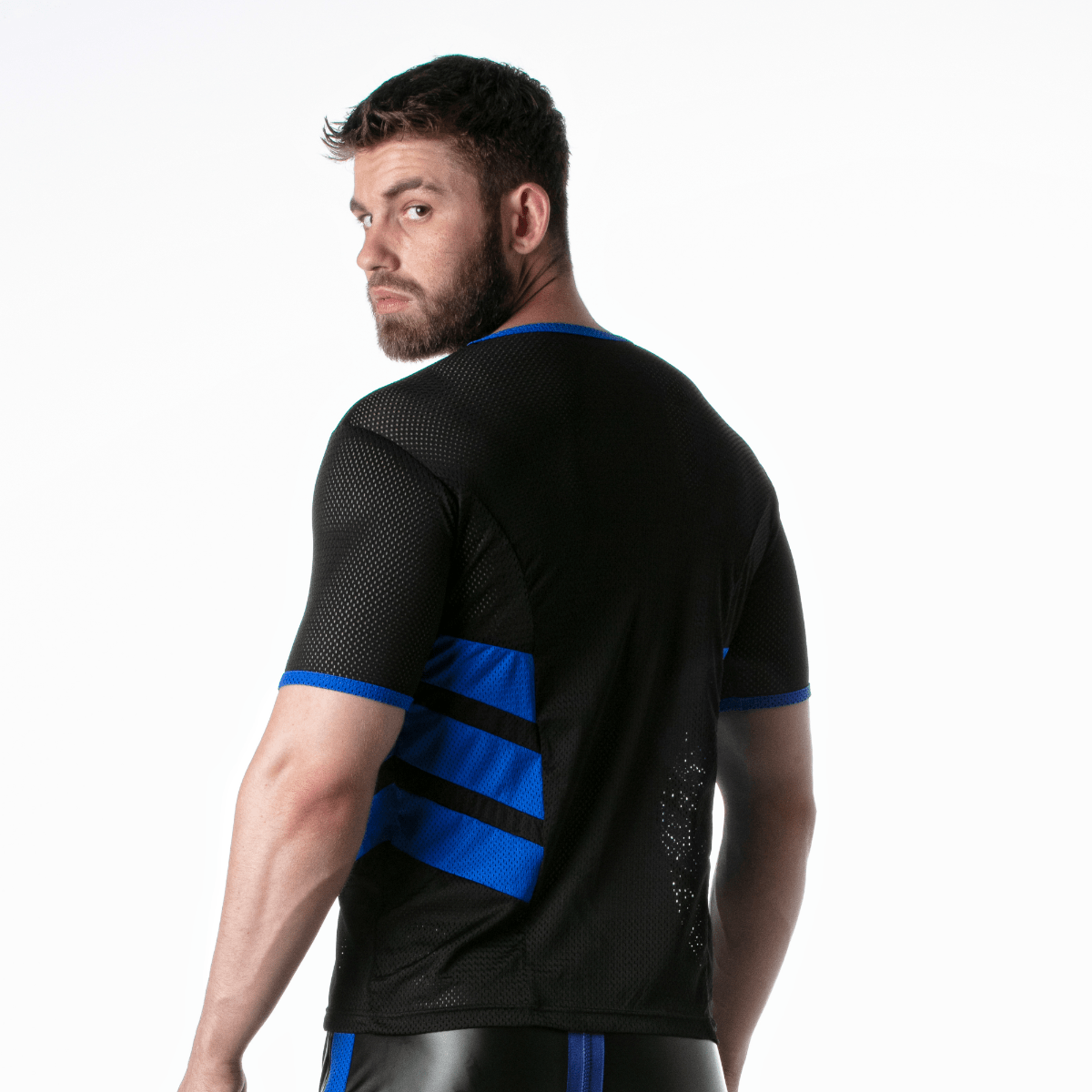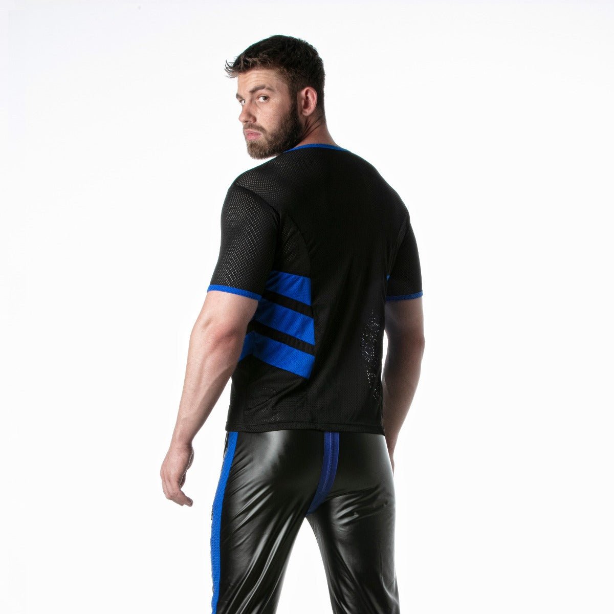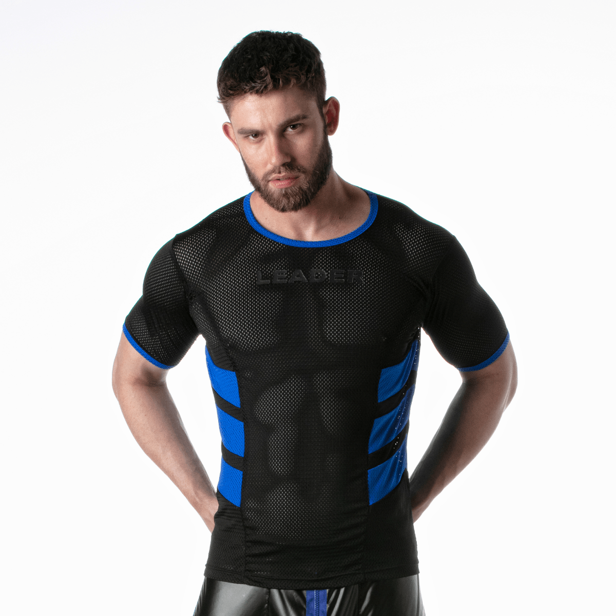 The Leader Loaded T Shirt Blue is made from airy sports mesh fabrics, perfect for showing of your body and keeping you cool a the gym. A masculine soccer style, with contrast piping at the collar and arms and racer flash stripes on the sides, creates a sporty look.