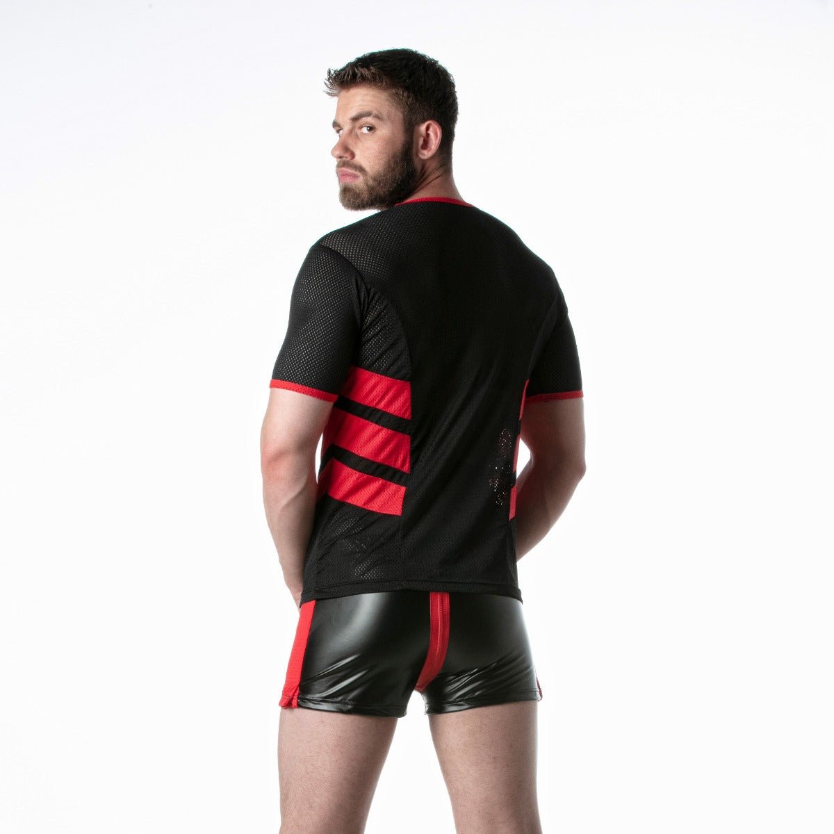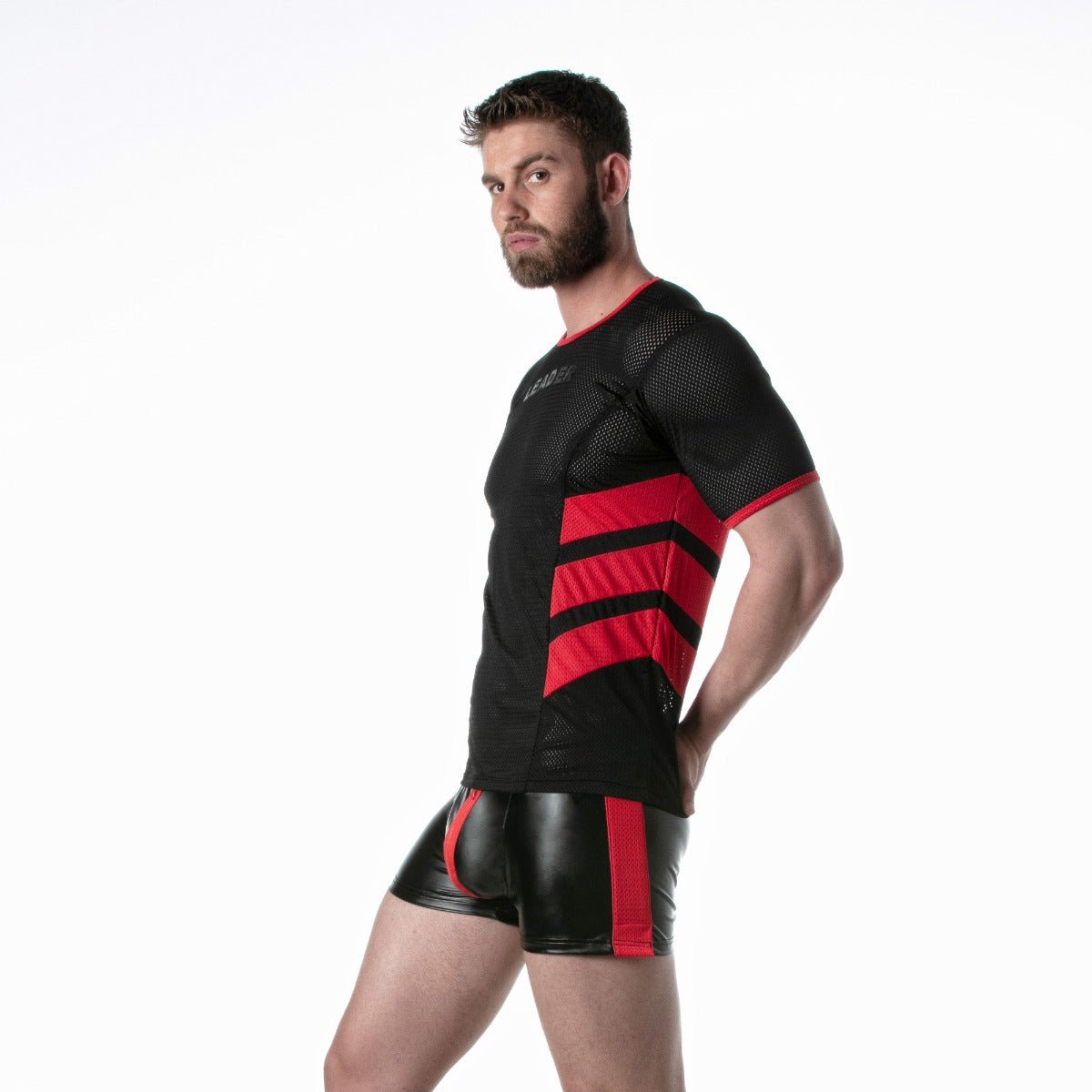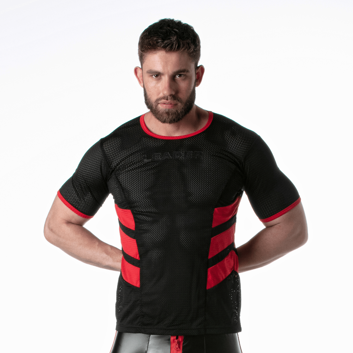 The Leader Loaded T Shirt Red is made from airy sports mesh fabrics, perfect for showing of your body and keeping you cool a the gym. A masculine soccer style, with contrast piping at the collar and arms and racer flash stripes on the sides, creates a sporty look.