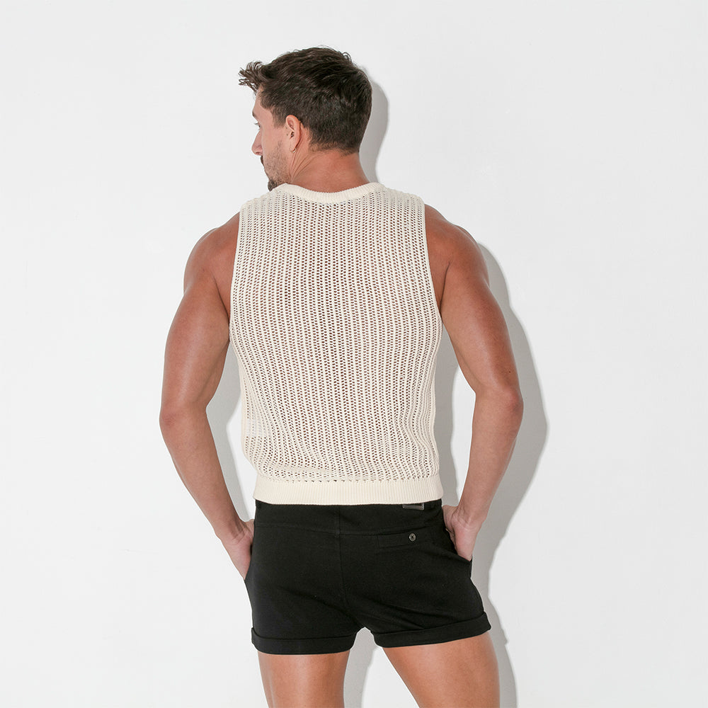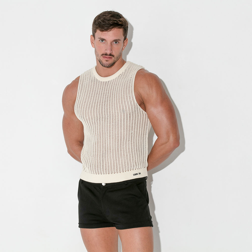Get ready for a long hot summer in this Code 22 Knitted Tank Top Off White. This beautiful vest is bang on trend and perfect for holidays, sunny days and get aways. The breathable mesh shows off your body perfectly and the cut is designed to compliment all body types. The open armholes ensure extra comfort in this high quality knitted tanktop. The rib finishing around the neck and the Code 22 logo along the bottom finishes off this unique and stylish addition which is already one of our summer 2023 favourites.