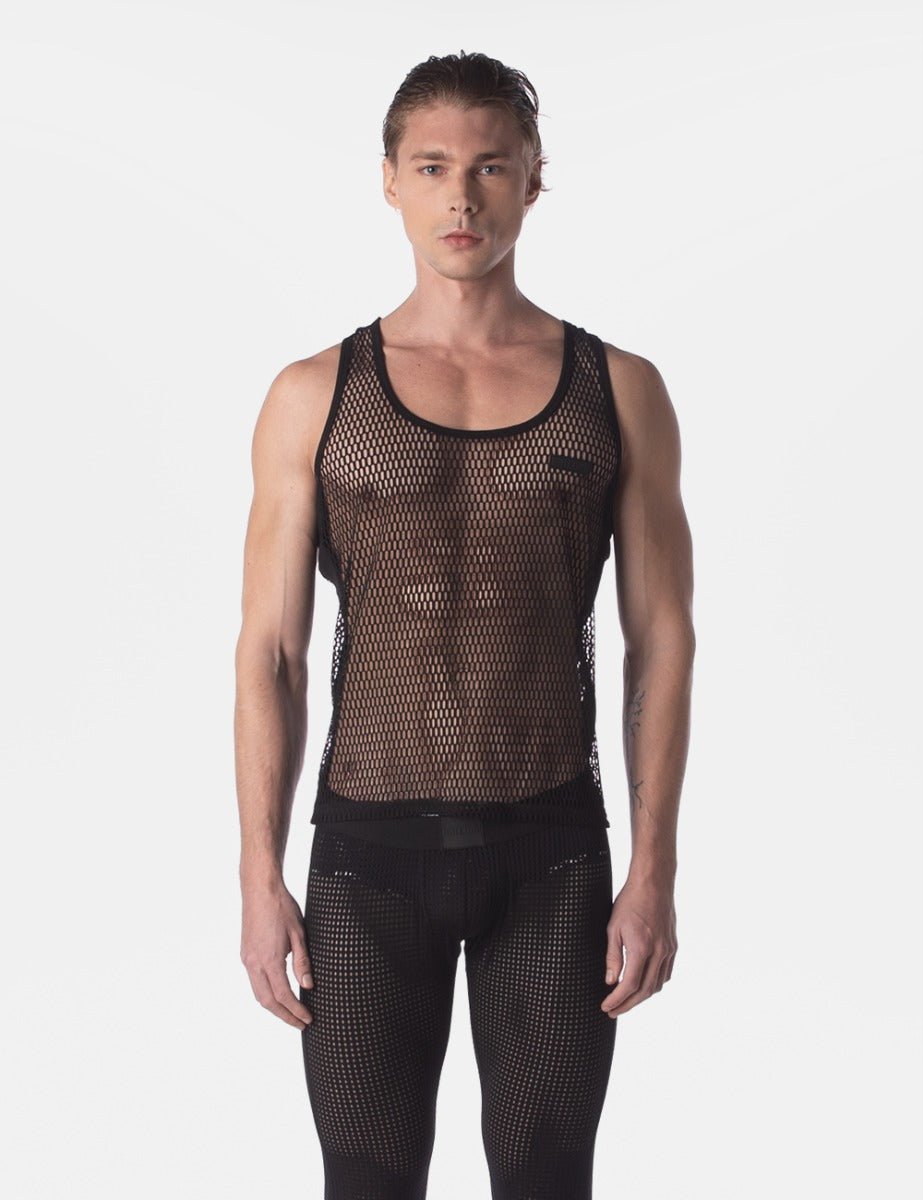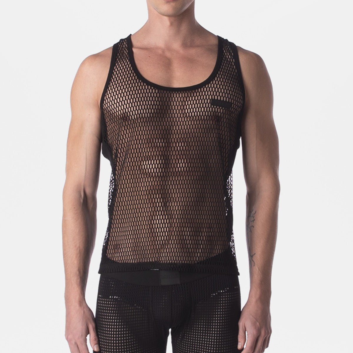 Instantly slip into a sexy fetish look with the Barcode Berlin Tank Top Ravek Black. This high-quality mesh tank in Barcode Berlin’s signature effortlessly cool style makes any outfit ready for after dark parties and kinky playtime.