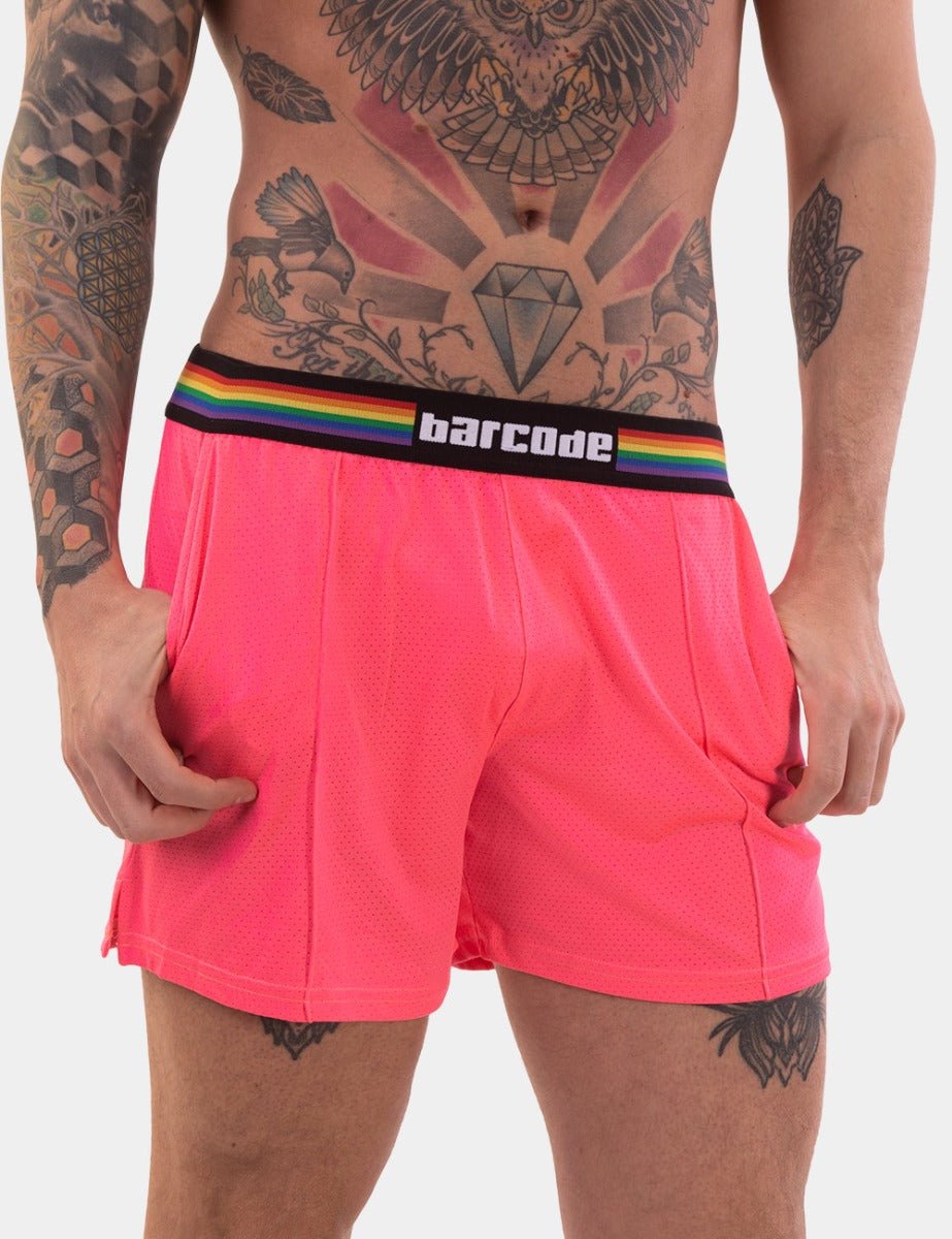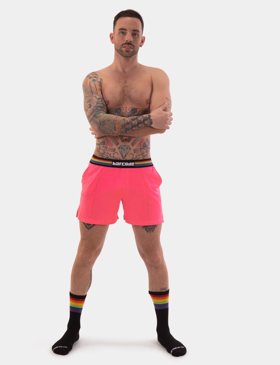 The Barcode Berlin Pride Short Neon Pink is a practical, sexy and fun wardrobe must-have! Hit the beach, the parties or the gym in sporty shorts with rainbow waistband designed to keep you feeling loud, comfortable and proud.