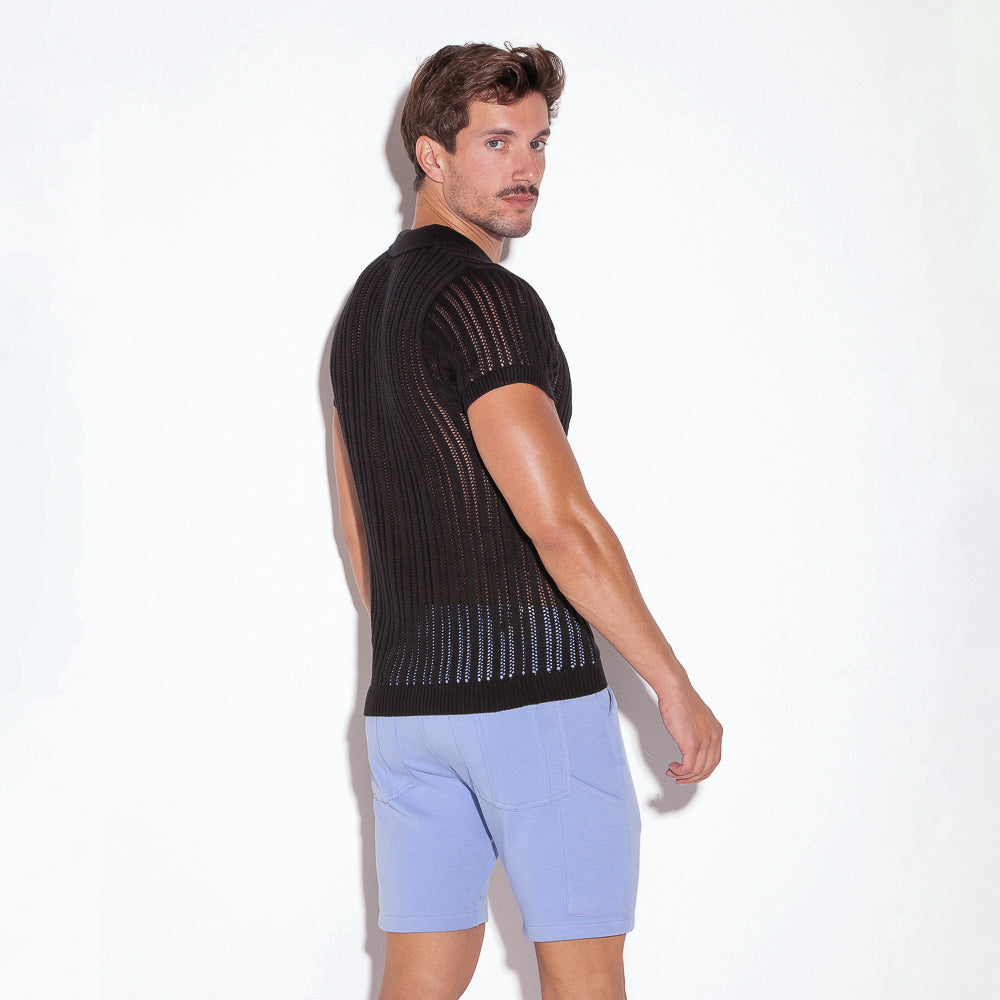 Code 22 Knitted Stripe Polo Shirt Black