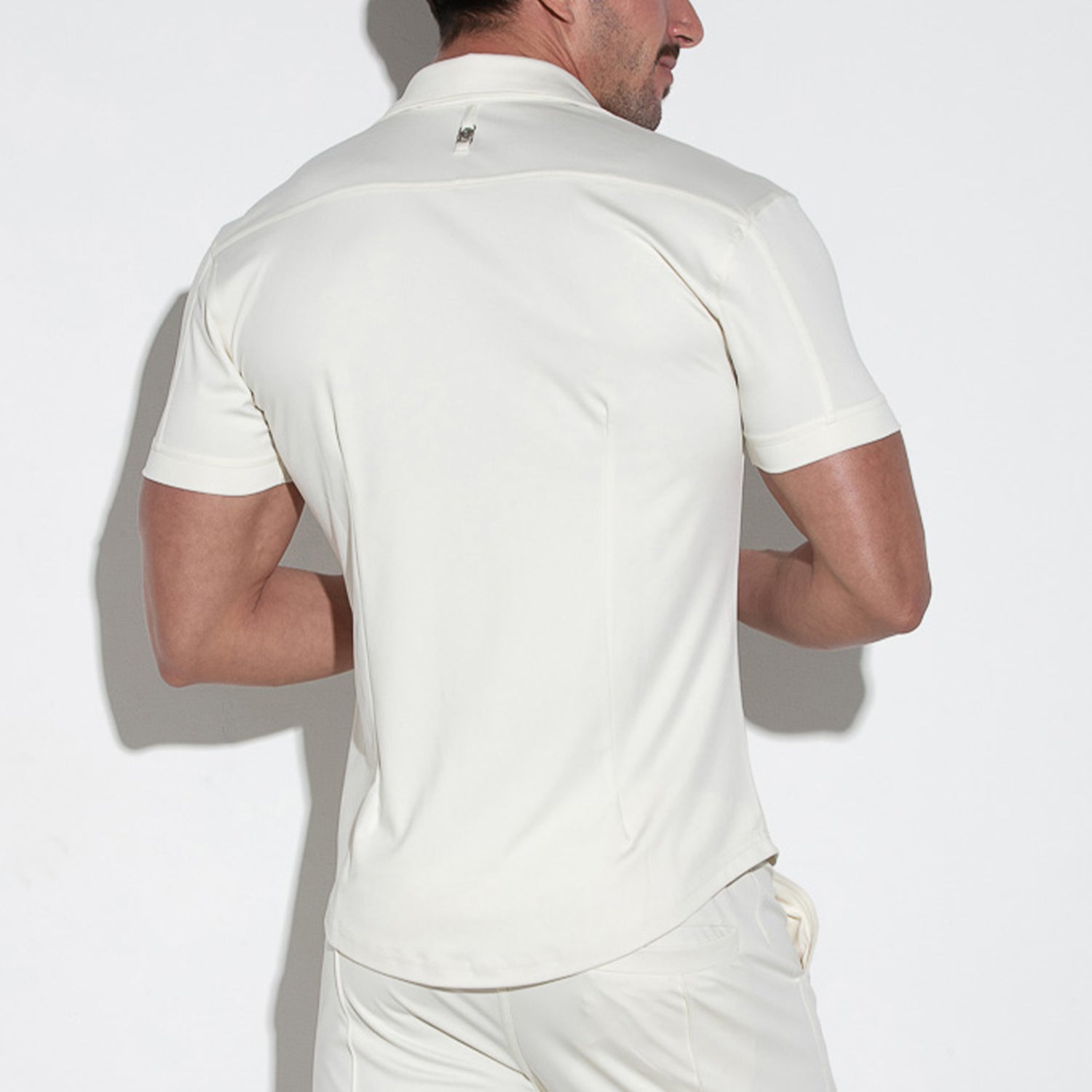 Engineered for a refined silhouette, this Code 22 Sleek Slim Shirt Off White combines premium microfiber fabric with meticulous tailoring. The silky texture delivers exceptional comfort while the strategic shirt collar and front button closure create a polished aesthetic. Sleeve cuffs are precisely designed to enhance arm definition, complemented by the signature laser-engraved logo—a hallmark of Code 22's commitment to sophisticated detailing.