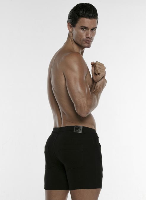 A low rise short with zip front fly and a total of 5 pockets on the side and the butt.