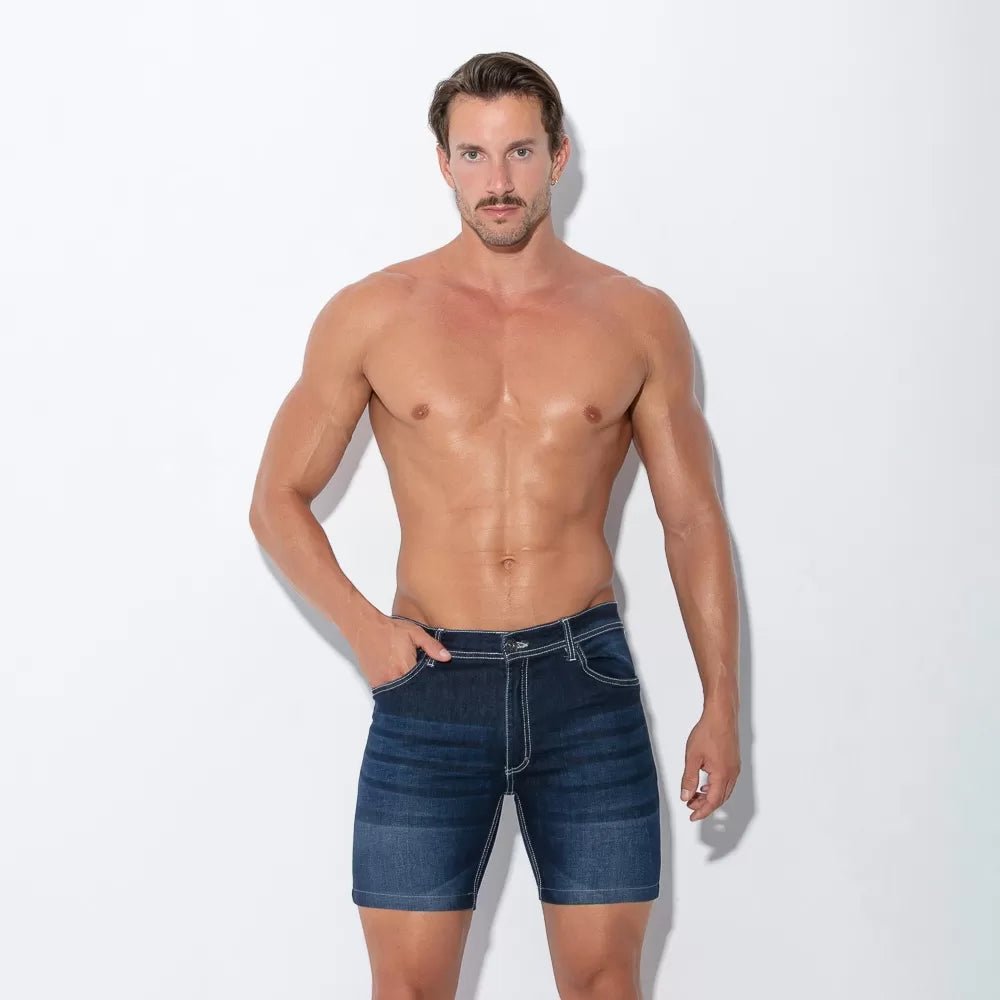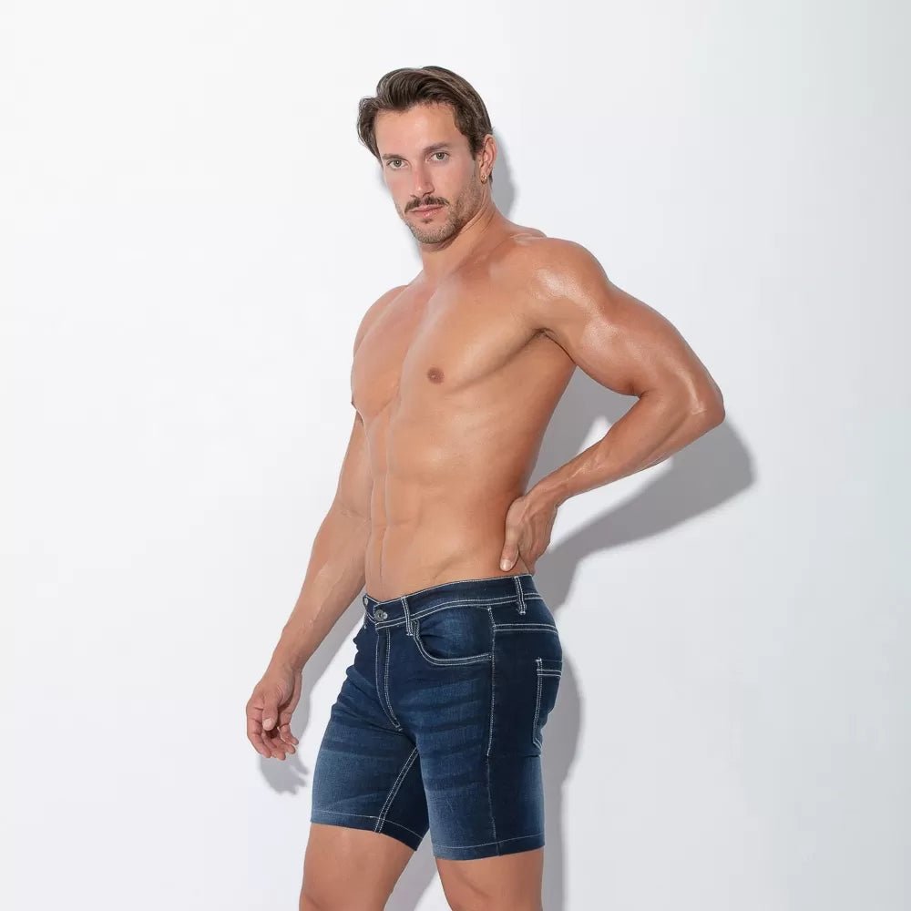 The Code 22 Stretch Denim 5 Pocket Short Navy perfectly combines practicality with fetish fashion in a sculpted, flattering fit. The worn-out look and red stitching adds retro vintage chic to this comfortable, sexy wardrobe essential!