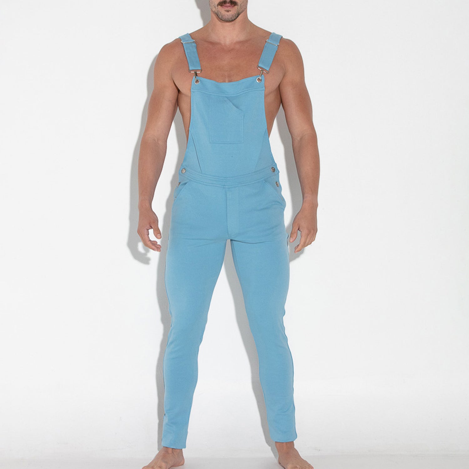 Add style with the Code 22 Utility Overall Sky Blue. Designed with a slim fit and stretch fabric, these overalls move with you, making every activity a breeze. Adjustable buckle straps let you find the perfect fit, while the zipped fly and side button openings make dressing up or down quick and easy. Keep your essentials close in the spacious front kangaroo pocket, and show off a playful touch with the silicone badge on the back waist. Whether you're working hard or hanging out, these overalls add a splash of fun and functionality to your wardrobe.