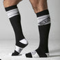 Locker Gear Knee High Socks White boldly combine a striking contrast design with iconic branded stripes, making them impossible to ignore. These socks are made for those who dare to show their colours and wear their fetish on their sleeves; or in this case, their legs. Crafted for both comfort and durability, they ensure you stay confident and comfortable all day long while making a fearless style statement. Perfect for anyone ready to let their unique identity shine through every step.