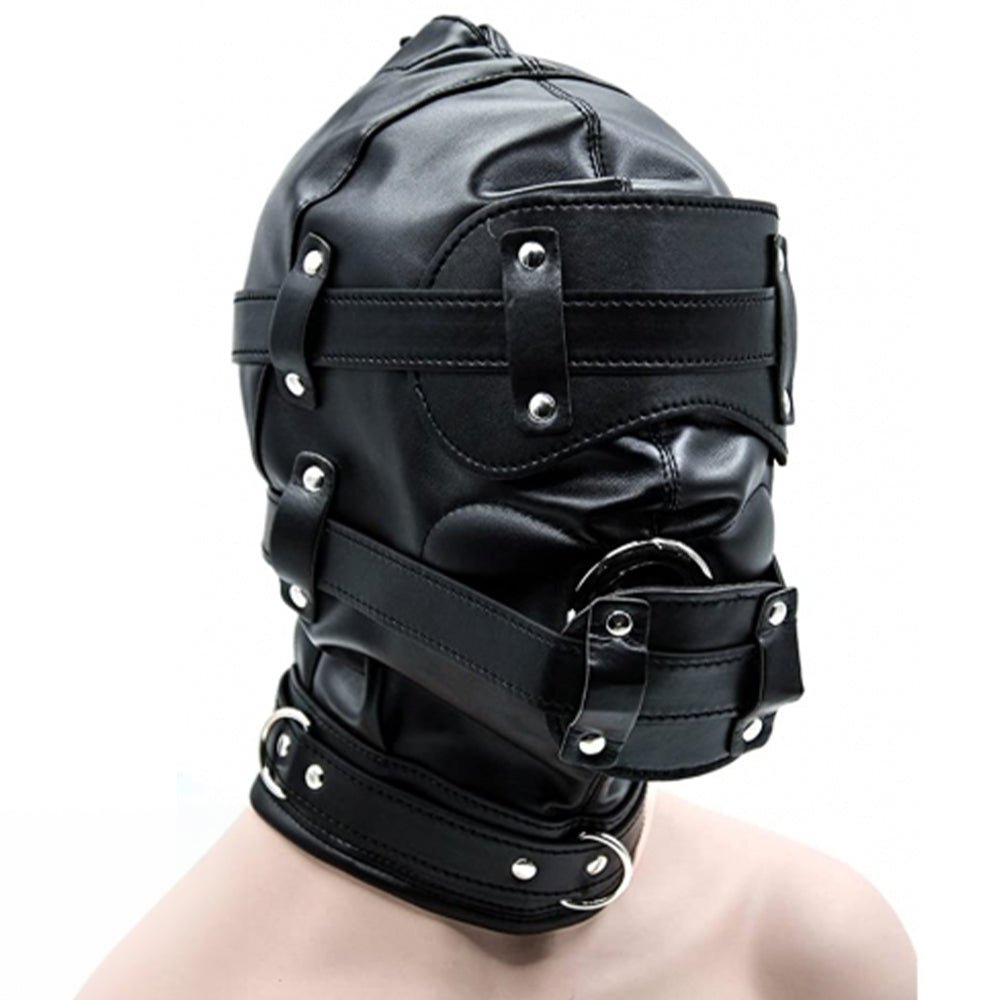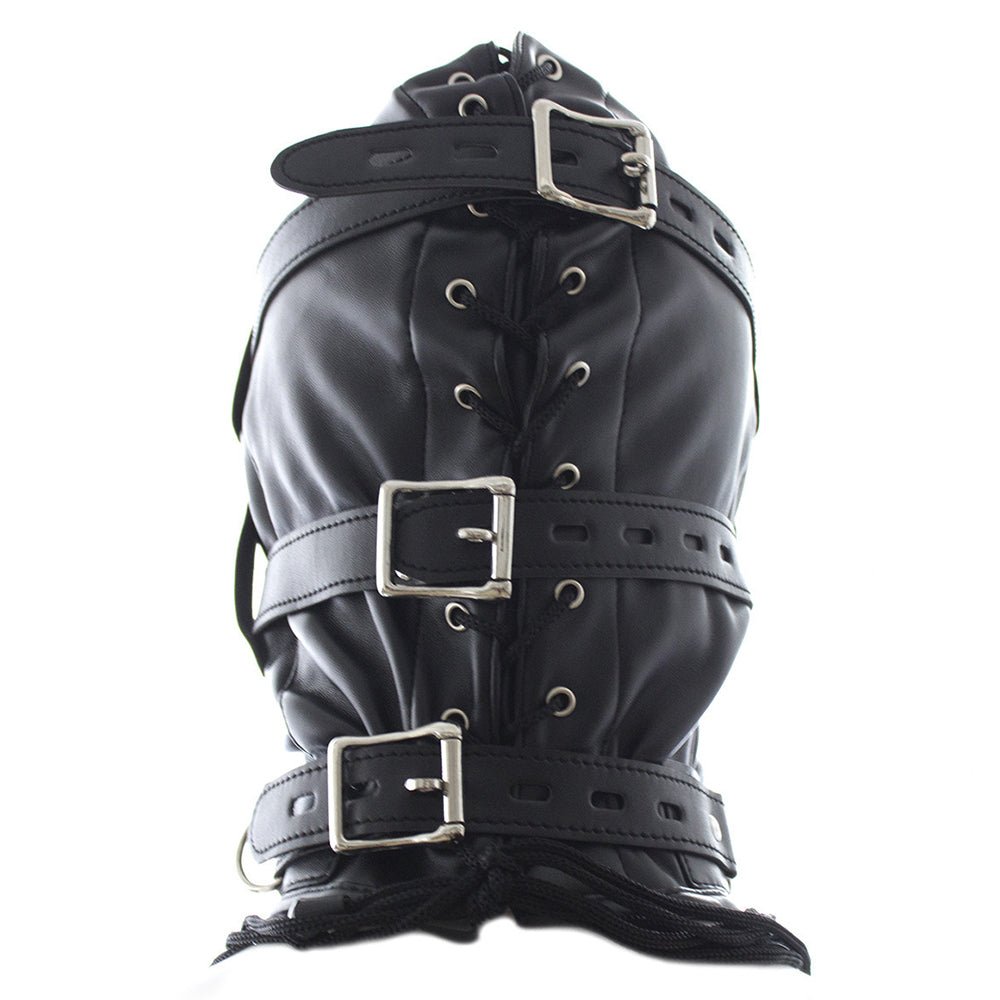 Metal buckle straps for the eye mask and mouthpiece let you adjust to your most comfortable fastening, and the hood can be loosened or tightened for a perfect fit with a corseted drawstring back.