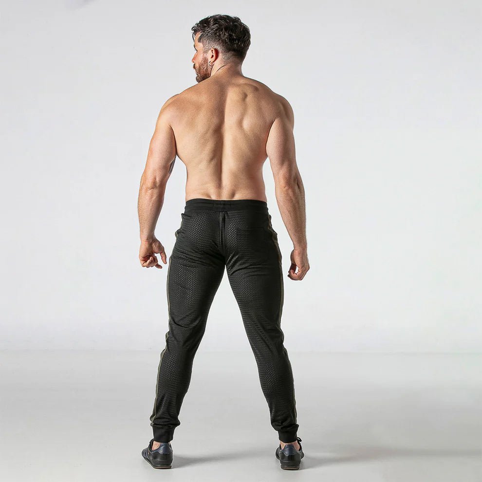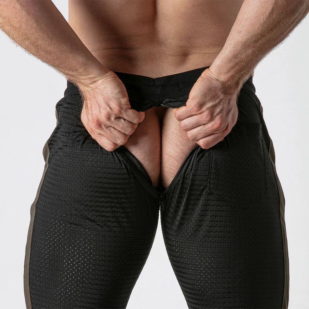 Keep cool and look hot in the Locker Gear Sport Mesh Back Zip Jogger Khaki! Ultra-practical sportswear gives you added fetish flair with a mesh fabric and cheeky unzippable glory hole.