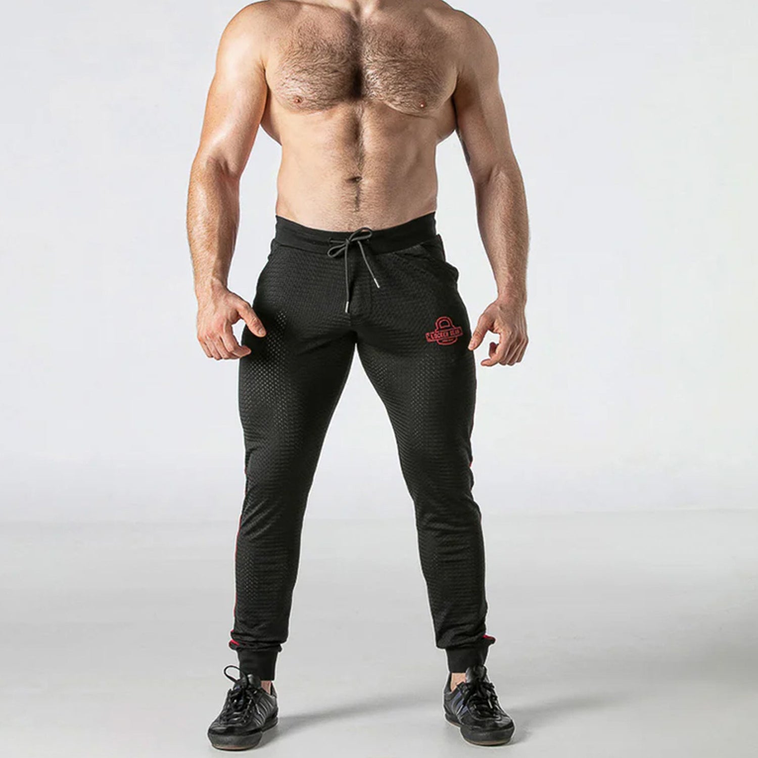 Keep cool and look hot in the Locker Gear Sport Mesh Back Zip Jogger Red! Ultra-practical sportswear gives you added fetish flair with a mesh fabric and cheeky unzippable glory hole.
