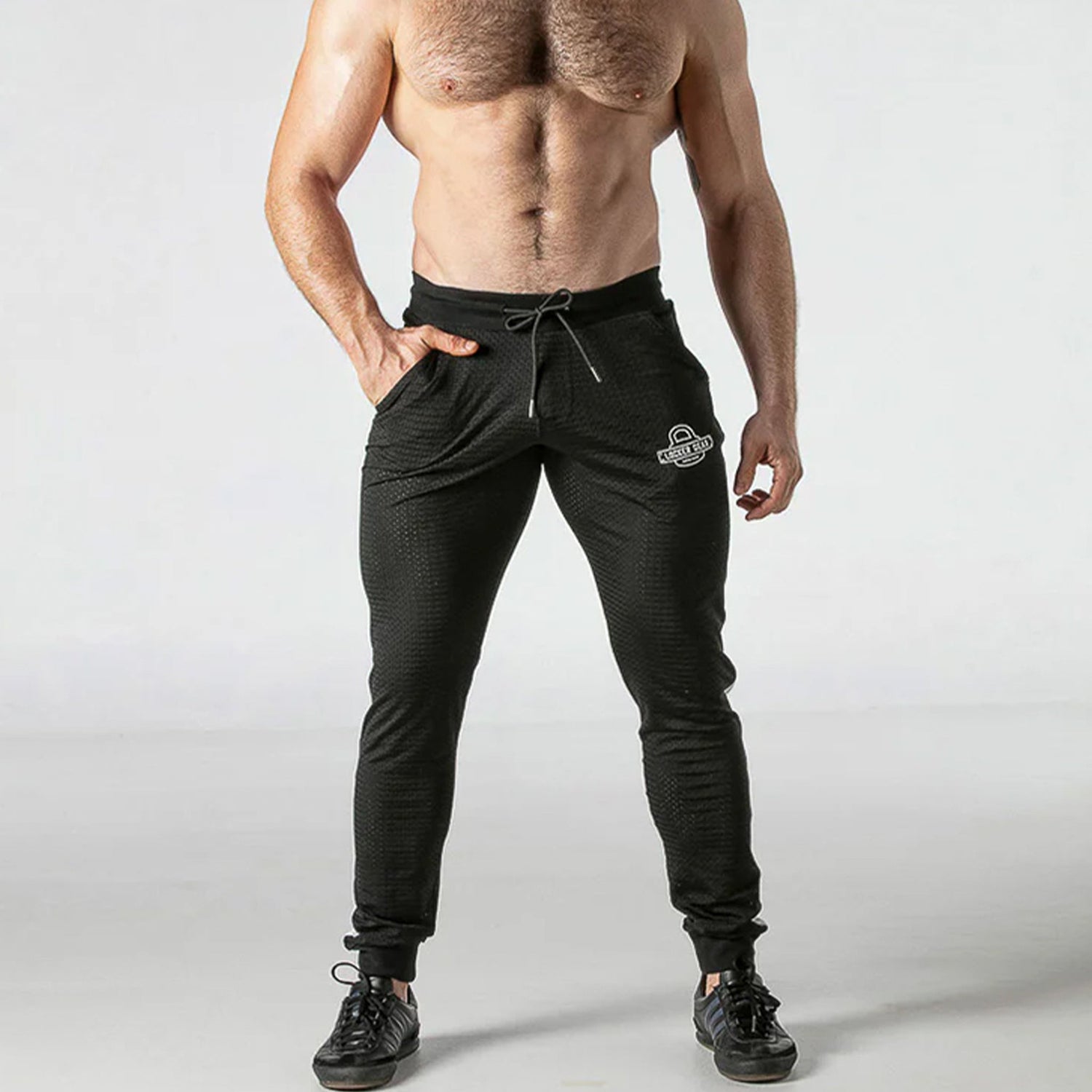 Made of the finest breathable mesh fabric, these jogging pants are designed to move with you. Pinhole side bands in contrast colours pop out and let you express your individual style, while two front pockets and a back pocket give added practicality. The hidden back zipper opening gives a kinky twist to this premium sportswear and your playmates easy access to where the party is!