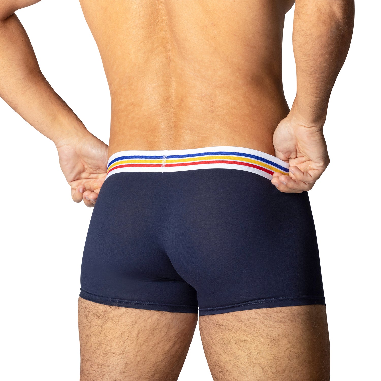 Experience ultimate comfort and support with our BIKE Stretch Cotton Boxer Navy. Made with a super soft cotton blend, our boxers provide both support and freedom. The contoured pouch ensures support and prominence, while the 3 inch inseam offers optimal coverage to pair with even short shorts!