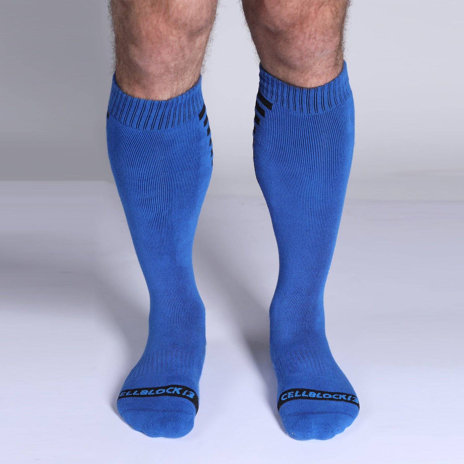 Cellblock 13 Iron Grip Knee High Socks Blue is backordered and will ship as soon as it is back in stock.