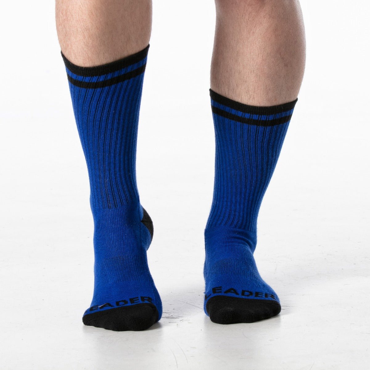 The Leader Loaded Soccer Socks Blue show everyone you’re in charge! Combining bold colours with a fetish feel, these sporty, high-quality socks will make an impact when you’re powering through at the gym or partying hard through the weekend.