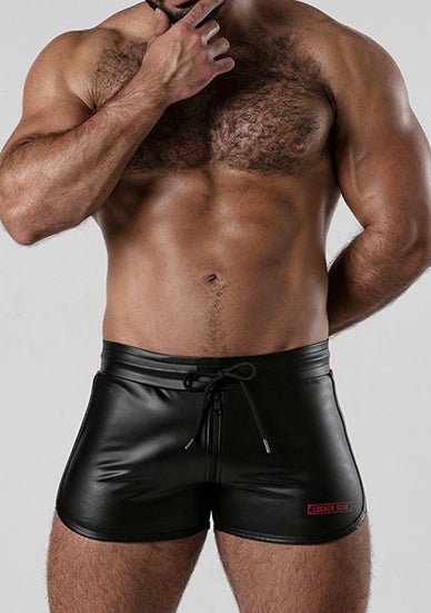 Quality and kink combine in the Locker Gear Backroom 2 Way Zipper Short Red. Black Leatherette body with contrast colour side panles, we think they are perfect for the club and bound to get you noticed.