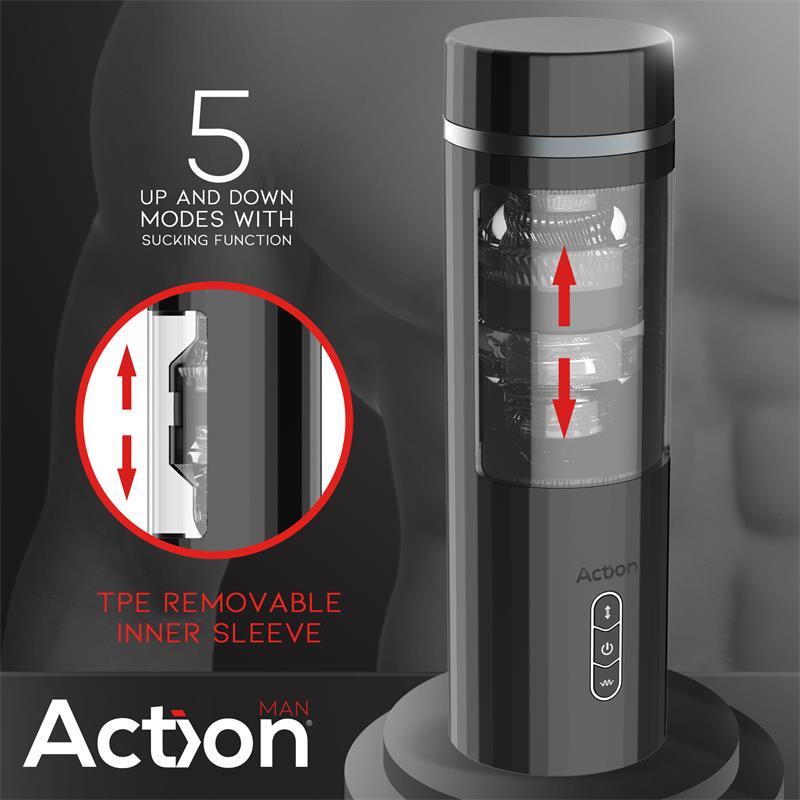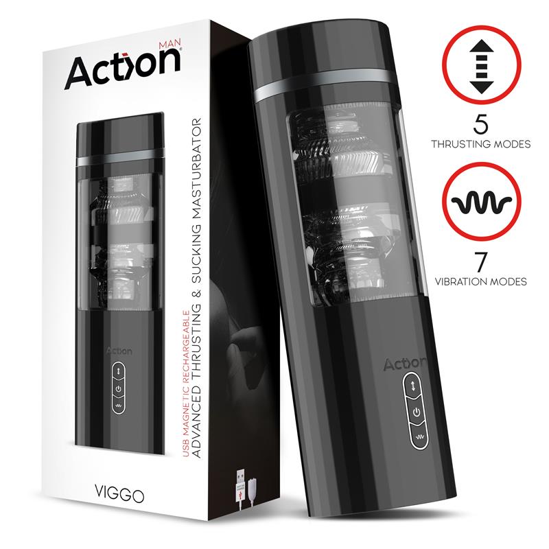 Get an unparallelled masturbation experience with the Action Viggo Advanced Up Down Sucking Masturbator! This innovative toy has the best internal features on the market for male masturbation with a triple whammy of vibration, up and down thrusting and deeply satisfying suction.