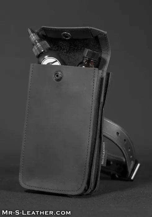 You know that feeling when you're in the club, wearing probably not much at all, and you just wish you had somewhere to put your phone or other belongings? The Mr S Leather Versatile Phone Holder Max will solve that problem. Made from real leather and with adjustable leather straps and a cut out for sliding onto a belt or underwear, this handy piece of kit is truly versatile. Carry your phone, poppers, lube and other essential items along with your cards, tickets or tokens in the handy middle pocket. This large handy holster maintains your fetish or bondage aesthetic whilst being sturdy and practical!