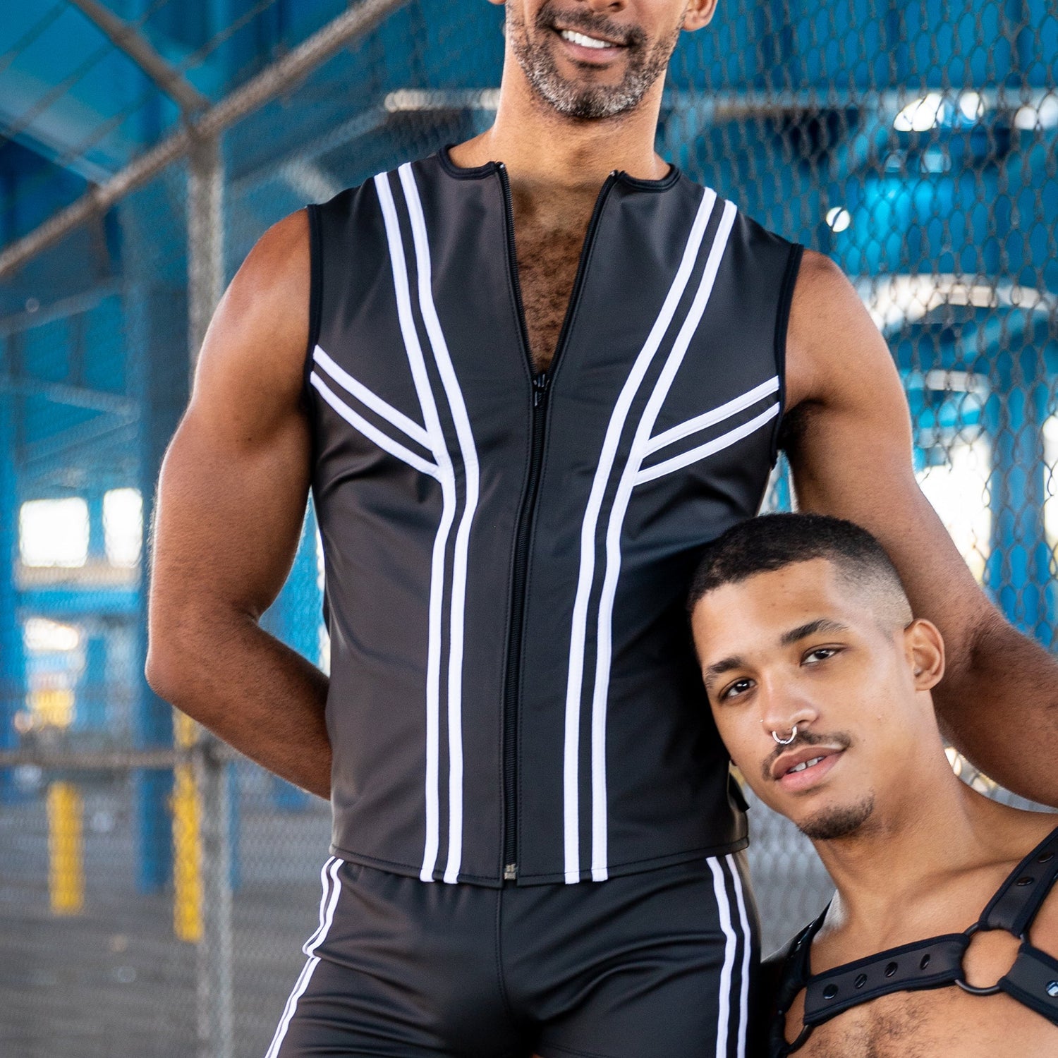 Made from light, thin 4-way stretch synthetic rubber material, give your BDSM gear a futuristic reboot in ultra-modern design. Easily ripped off in the heat of the moment with a front zipper, the vest is perfect for catching everyone’s attention over drinks at the bar or rough play in the darkroom.
