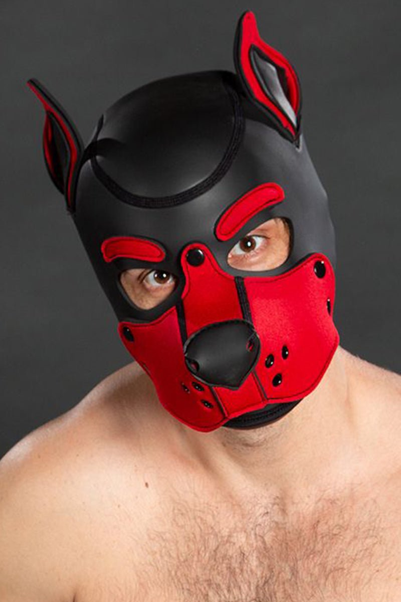 Mr S Leather Neoprene K9 Puppy Hood Black Red