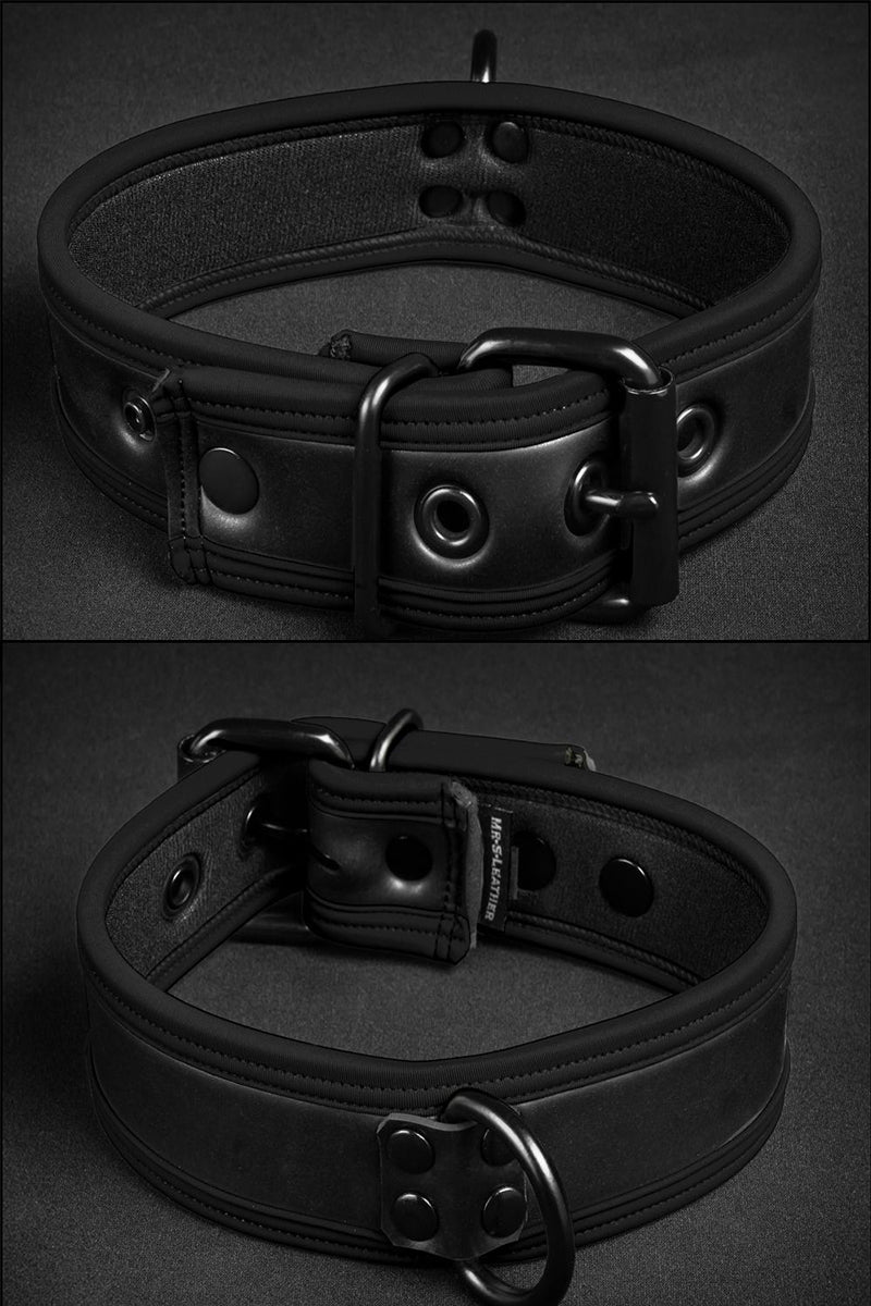 Mr S Leather Neoprene Puppy Collar Black Black