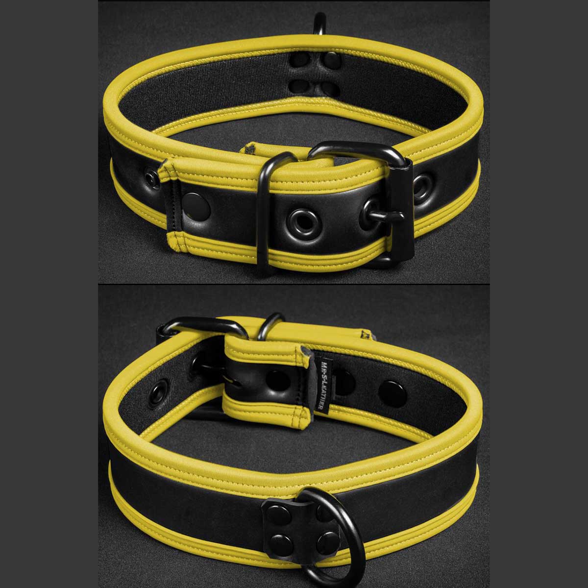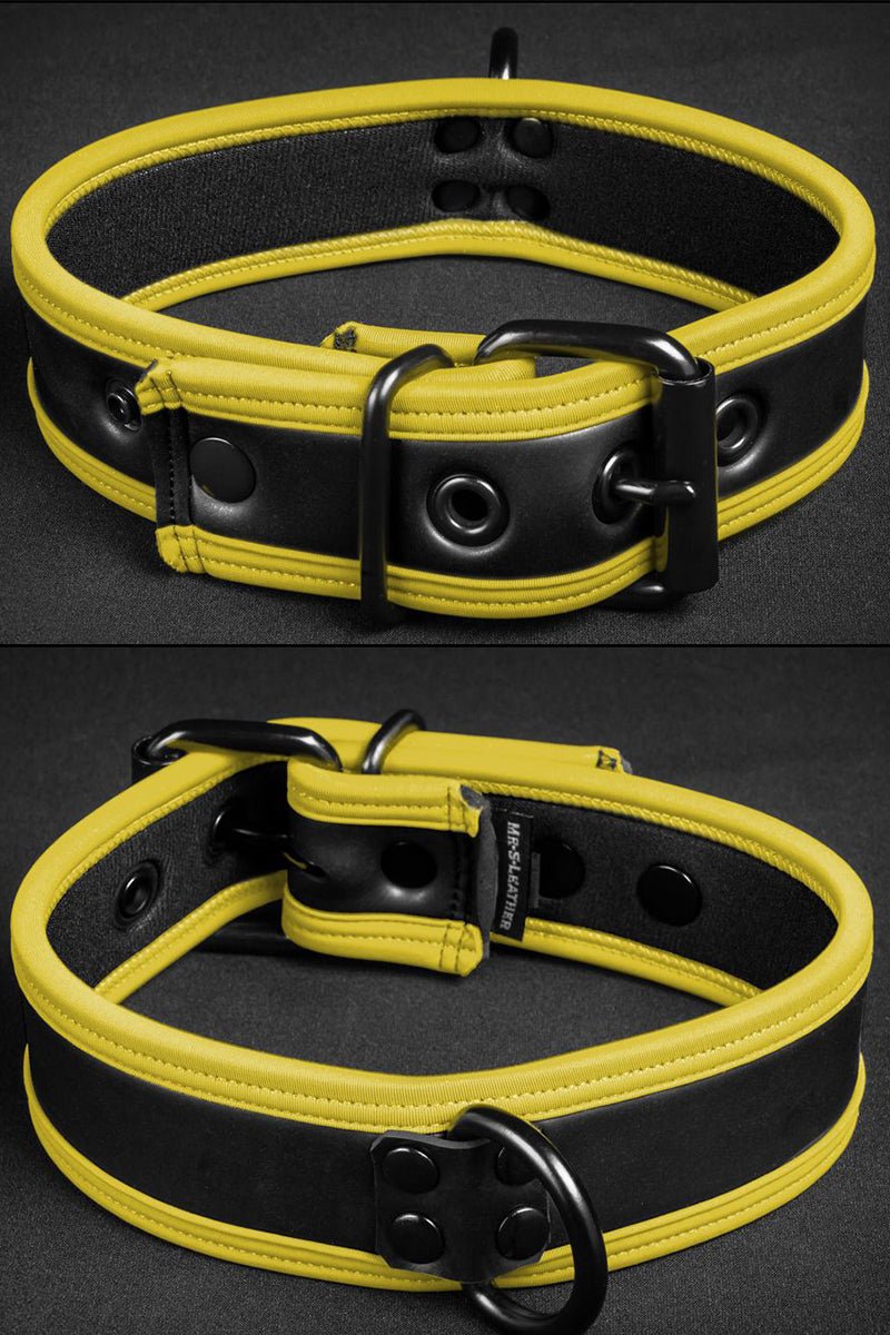 Mr S Leather Neoprene Puppy Collar Black Yellow